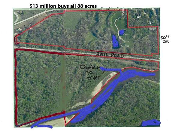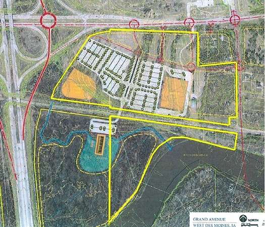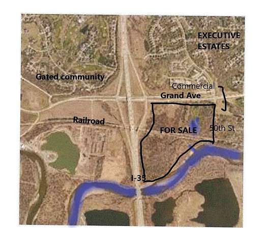 Est $73,929/moGreat visibility from Interstate 35, next exit after Hwy 5 by-pass coming from south. extends all the way to Raccoon River. (2) 3car garages, 2 retention ponds, black top drive loops through. Heavy woods, pasture & flood plain. Railroad runs along southern edge. Wells and coal mines. Transitional area, much new high tech development, recreational center, sited for largest hotel & water park. 3 miles from hospitals & Jordan Creek Town Center. Proposed pedestrian bridge across river. Single family, multifamily, low dense commercial zoning. 5 ingress/egress driveways. Across the street from firehouse & EMT. Polk county, West Des Moines, Commerce.