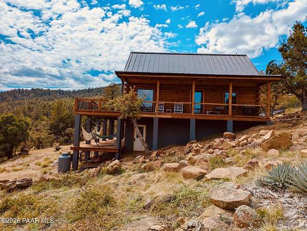 Welcome to your little slice of heaven in the Bradshaw Mountains.Just two hours from Phoenix, this stunning two-year-old cabin was built from the ground up on a private 2-acre lot -- with breathtaking views of the valley stretching out below. Surrounded by pines and wide-open skies, you'll have every comfort of home at your fingertips.The open floor plan with loft, dual-pane windows, and all-stainless steel appliances make this feel like a true retreat. Step outside onto the expansive decks for your morning coffee, evening sunsets, or simply some well-earned front-porch sitting.Plenty of room for entertaining, BBQ's or Picnic's.With 2 bedrooms and 1.5 bathrooms, this fully turnkey property lets you escape the desert heat in summer and wake up to fresh mountain snow in winter. And when adventure calls, miles of dirt bike and UTV trails are just minutes from your door.Whether you're looking for a personal getaway or a savvy investment, this cabin is a turnkey opportunity -- perfectly positioned as a high-performing Airbnb. The mountain setting, modern finishes, and year-round appeal make it exactly what guests are searching for. Everything has been taken care of -- all you have to do is show up (or let the bookings roll in).