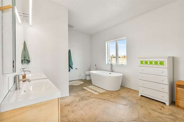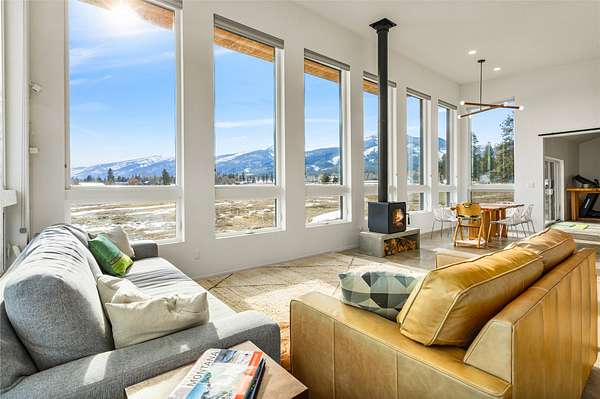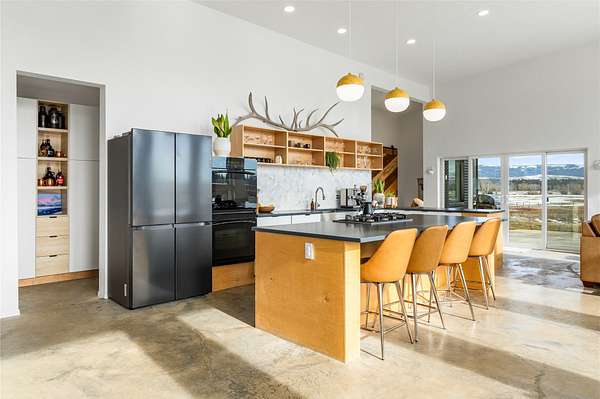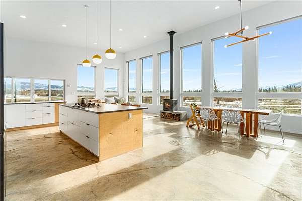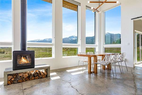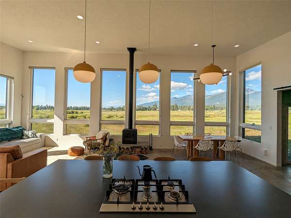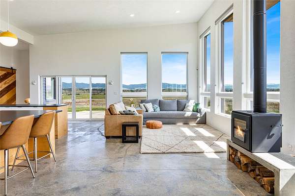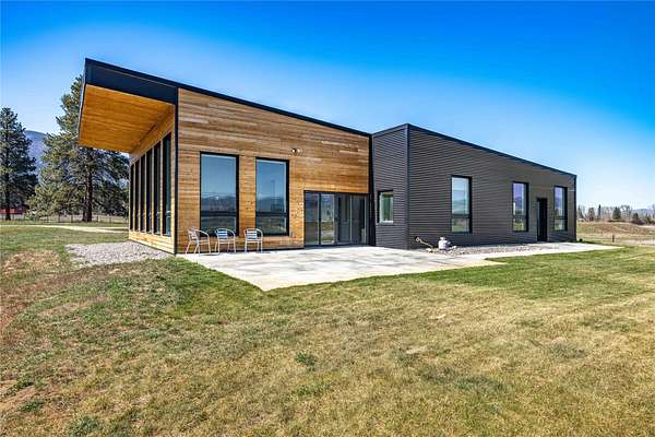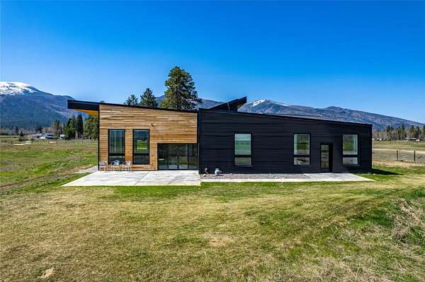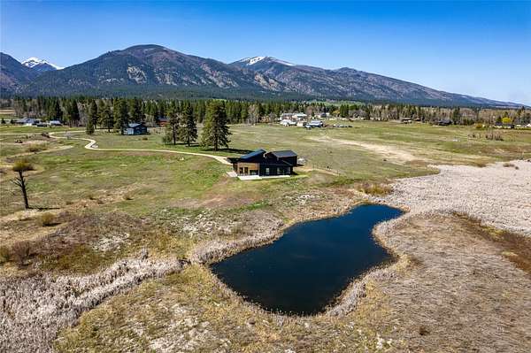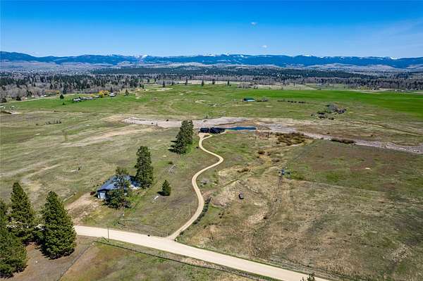 Escape to a modern Montana retreat on 20+ private acres with a pond, creek, excellent water rights, and stunning 360 degrees mountain views just 20 minutes from Missoula. This 3BD/3BA 3,200 sq ft energy-efficient home offers single-level living, soaring ceilings, in-floor radiant heat, solar power, and a super-insulated and resilient construction. Expansive windows frame sunrise-to-sunset views, while the gourmet kitchen features a large quartz island, gas cooktop, double oven, oversized sink, and a walk-through butler pantry. The luxurious master suite includes private patio access, pond views, a soaking tub, curbless walk-in shower, and a spacious closet connected to the laundry room. A flexible bonus space with a 20ft ceiling is ideal for a gym, theater, office, or guest suite. Outside, enjoy a large patio overlooking the pond. A brandnew 32' x 30' detached garage/shop was built in 2025. With no HOA, CCRs, or zoning and multiple potential building sites this property offers freedom The property offers excellent suitability for horses or livestock, and unmatched privacy backed by a neighboring 300-acre conservation ranch - No one can build in your back yard. Proximity to the Lee Metcalf National Wildlife Refuge brings frequent wildlife sightings, creating a peaceful sanctuary just minutes from groceries, schools, restaurants, and everyday essentials. While Missoula is 20 minutes away, the center of Florence is only 5 minutes down the road.