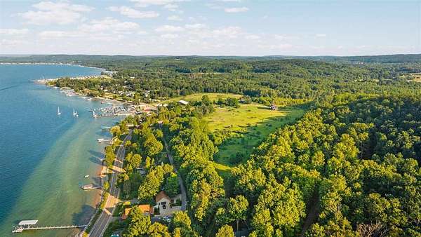 This is a property that must be experienced to truly appreciate - photos, video, and even this description cant capture the beauty and potential it holds. Imagine 27 acres of rolling field, dotted with wildflowers, leading to the clear waters of Lake Charlevoix. At its heart is a newly built Scandinavian-inspired custom home, crafted with clean lines, floor-to-ceiling windows, and warm modern finishes, perfectly positioned atop a gentle hill to take in panoramic views of the lake on one side and Young State Park on the other. Included is a rare 50-foot buildable waterfront lot with its own parcel ID, offering the chance to construct your new waterfront home, guest cottage, or day retreat. The new owner could also sell this parcel separately while retaining the main acreage, which includes an additional 20 feet of non-buildable frontage for grilling, relaxing, and direct lake access. The land features 650 feet of Dyer Creek at the back, multiple potential scenic building sites, and an RV hookup - 50 & 30 AMP, water, and sewer for private camping or future projects. A large pole barn offers space for boats and gear, and the waterfront parcel comes with a dock, 10,000 lb boat lift, and gear shed for effortless lake days. Minutes from Boyne City and close to Whitings Park, this is a legacy property blending refined design with exceptional possibilities.