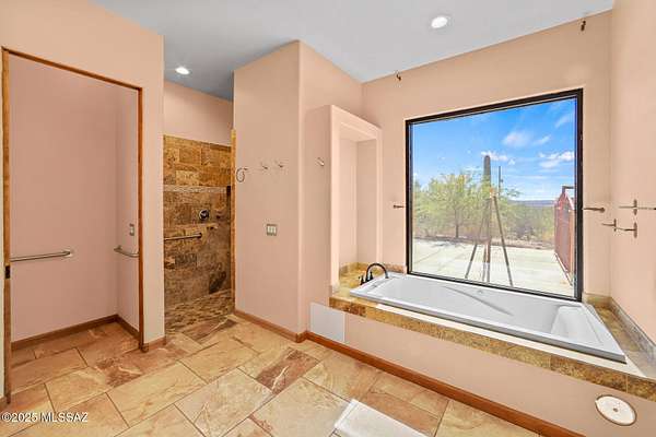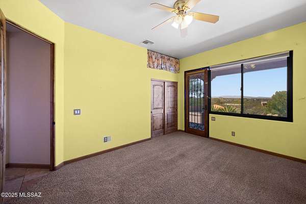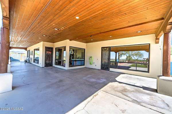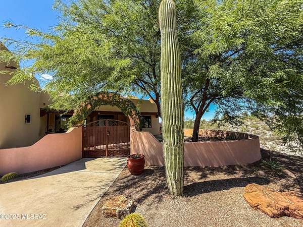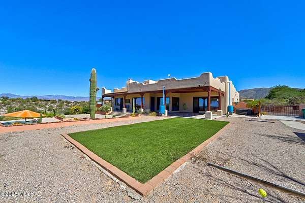 Million Dollar Panoramic, YES 180 degree view perched high above the valley floor where you will see sweeping views of the Santa Rita Mountains, Tucson Mountains, to the Santa Catalina Mountains. You can call this entertainer's gem on over 3.5 acres a private desert retreat where tranquility meets breathtaking your home. From the moment you enter the charming courtyard, your embraced by architectural details everywhere in this custom SW home. First impression, the jaw dropping entry to inside with soaring 12' ceilings, vigas beams, solid wood 8' knotty alder doors and cabinetry, a kitchen for entertaining, to the HUGE windows across the great room pulling you to those panoramic outside views. Once outside enjoy those views from your covered patio to the grassy area, or better yet a dip in the pool or spa.