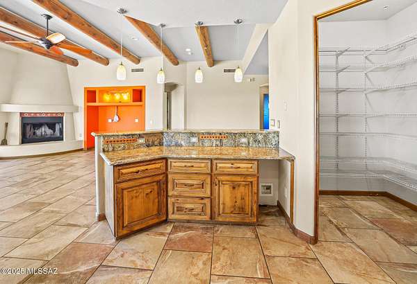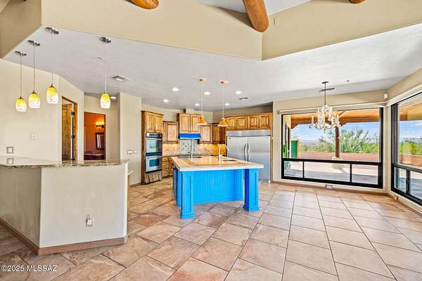 - Beamed Ceilings, High Ceilings, Kitchen Island, Sound System, Walk-In Closet(s)