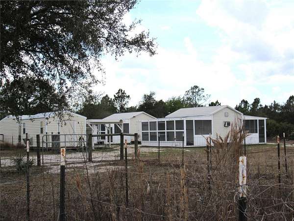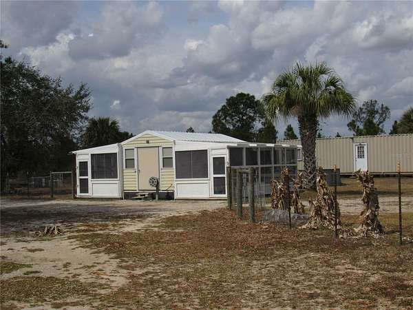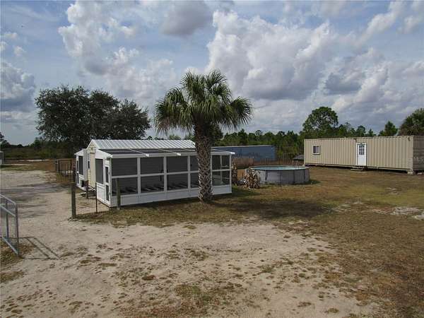 Set on 5 peaceful acres in the Golden Ranches in Punta Gorda, this 2017 Champion-built modular home offers space, privacy, and exceptional versatility. With nearly 3,000 sq ft of living area, this well-designed residence features a metal roof, 4 bedrooms and 3.5 baths, including a primary ensuite bedroom and a second ensuite bedroom—ideal for multigenerational living or guest privacy. The heart of the home is the expansive Great Room, complete with a wood-burning fireplace and open flow to the kitchen and dining area. There is also a separate living room and inside laundry. Step outside to the 42×13 screened porch with Trex flooring and enjoy views of the private property. Zoning is Agricultural, offering flexibility for a variety of uses. In addition to the home, the property includes five permitted 20×10 sheds, all anchored and topped with metal roofs (2022). Three sheds are outfitted with electricity, air conditioning, and 8,000 watts of backup solar, and include screened areas—perfect for hobby spaces or animal housing. Two additional sheds have been used as workshops. There are also two containers used for storage and a third anchored 40 x 8 container improved with a kitchen (propane range), living area, and full bath with shower. This structure has its own backup solar system (not currently connected), offering potential as a safe room or additional workspace. Upgrades include commercial-grade luxury vinyl flooring throughout the home, a manganese oxide water filtration system, and a large-capacity reverse osmosis system supplying drinking water to the home and outdoor areas. Experience the freedom of country living with modern comforts and room to create the lifestyle you envision. The possibilities are endless with the potential for animal rescues, boarding, breeding and so much more! Contact us for more details or to schedule your private showing.