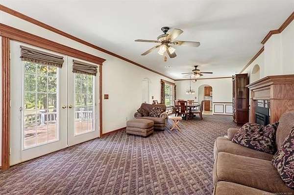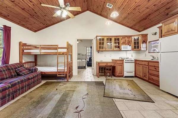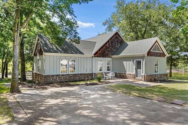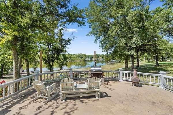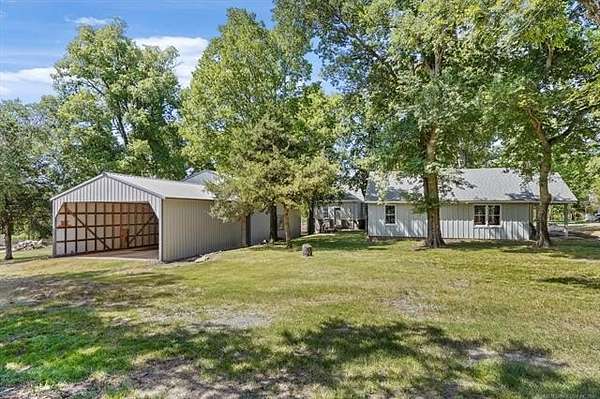 Beautiful setting in Lake Hudson with waterfront home and guest house. This vacation oasis or full time residence spans 4.95 acres with approximately 400 ft of shoreline and includes your own private concrete boat ramp. The main house is a large master suite with a smaller room that would accommodate a twin bed or bunk beds. This area could also serve as an office, exercise space or playroom. The second residence is a one bedroom home with separate living area, kitchen and private en suite bath. The main home has gas fireplace. French doors open to waterfront views from the spacious concrete patio. On property is also a metal two-bay shop with a carport for boat or RV with overhead storage and a safe room. There is an overhang to park a tractor or extra lake toys. The shop is wired for 220. The heat pump for the main home is less than five years old. The propane insert in fireplace and the propane stove are less than five years old. The two properties share a septic system. Water heater replaced in 2020. Roof six years old on both homes. Come enjoy living on one of Oklahoma's best kept secrets or use the property as an investment as a short term rental. Lake Hudson is home to several different fish species including large mouth bass, crappie, channel cat, bluegill, white bass and stripers. The lake covers 12,000 acres with 200 miles of shoreline at a maximum depth of 65 feet. Great for recreation, boating and enjoying the great outdoors!