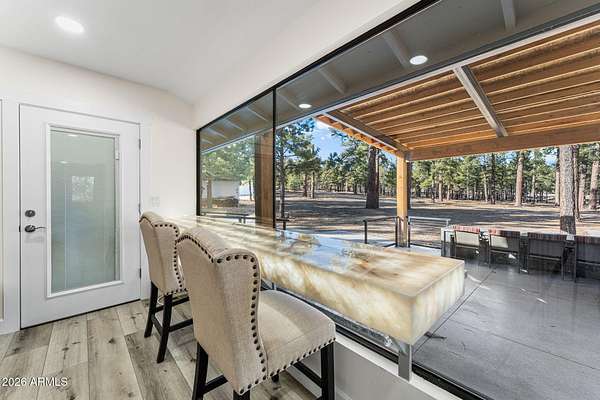 This is a RARE opportunity to own a Flagstaff get-away that BACKS TO NATIONAL FORREST, FULLY RENOVATED, 2.25 ACRES and much more! Spanning a thoughtfully designed layout with 6 bedrooms, 6 bathrooms, plus a dedicated office and den, the home has undergone major renovations, blending mountain character with refined modern finishes. Interiors are grounded in natural stone and wood, highlighted by a Cristallo quartzite wet bar and rare granite featured in the primary suite shower, delivering a level of material selection rarely found in the area. Walls of double-paned glass frame towering pines and forest views, while major system upgradesincluding two new HVAC units and a new roofensure year-round comfort at elevation. A circular driveway creates a strong arrival experience and practical flow, complementing the home's expansive footprint and two-story design. The grounds offer both immediacy and future potential. In addition to the existing acreage, there is an option to purchase an adjacent 2.25-acre parcel, allowing for estate expansion, enhanced privacy, or development. Casita plans are included, providing a clear path for guest accommodations or multi-generational living. The current 2,000 Gallon Septic tank will cover the approved plans for the Casita and RV garage Located 10 minutes from downtown Flagstaff, 5 minutes from Flagstaff Mall, and 30 minutes to Arizona Snowbowl, this is not simply a homeit's a strategic foothold in one of Northern Arizona's most desirable forested corridors.