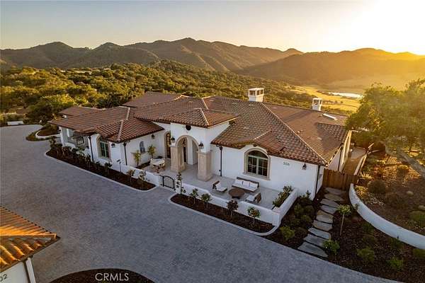 Welcome to your dream estate set on 22 private acres among majestic oak trees in the coveted ANZA Vineyard Estates. This newly constructed, custom home showcases authentic Santa Barbara-style architecture, offering a refined blend of elegance, privacy, and wine-country living just minutes from Pismo Beach and the renowned Edna Valley. Completed in 2024 by Greg Nester Construction & Development, the single-level residence features four bedrooms and four-and-a-half bathrooms with a seamless open-concept design. Elevated finishes include rift-cut quarter-sawn oak flooring, oversized solid-core arched doors with handcrafted casings, and premium Jeld-Wen windows. The expansive great room is the heart of the home, highlighted by a 13-foot custom tray ceiling, a cast stone fireplace, and bi-folding wrought iron doors that open to sweeping valley and hillside views. The chef’s kitchen is equally impressive, appointed with quartzite countertops, furniture-grade cabinetry, and top-of-the-line Wolf and Sub-Zero appliances. Thoughtfully curated enhancements elevate the living experience, including a custom in-ground spa with designer finishes, a fully integrated Sonos system indoors and out, smart home technology with security and app-controlled features, designer automated window coverings, and beautifully finished grounds with premium pet-grade synthetic turf. A garage with built-in cabinetry completes the home’s polished functionality. Set across expansive acreage, the property also offers exceptional potential for a future guest house, second residence, or legacy compound—creating a rare opportunity to expand and personalize your estate over time.