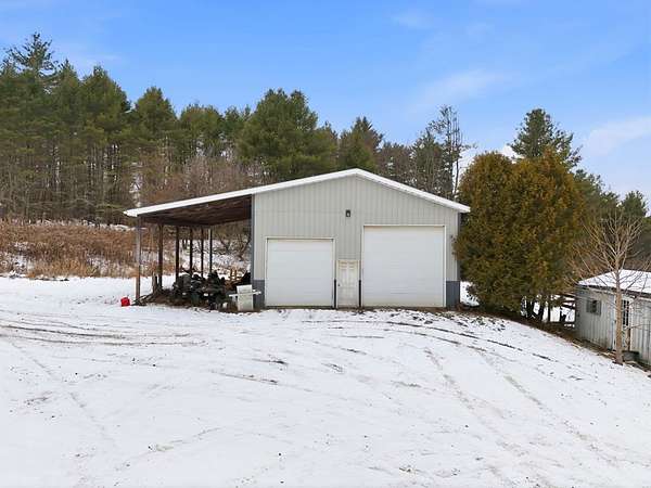 Welcome to a truly exceptional property offering space, flexibility, and privacy on over 57 acres of beautiful land, complete with a pond for peaceful views and outdoor enjoyment. This 4-5 bedroom, 3 full bath home features two primary suites, making it ideal for multi-generational living, guests, or anyone who values extra comfort and privacy. The home also offers first-floor laundry, a partially finished basement perfect for added living or recreational space, and a two-car attached garage for everyday convenience. Adding even more value is a pole barn with electric and heat, ideal for storage, hobbies, or equipment. Whether you're looking for room to roam, work the land, or simply enjoy quiet country living, this rare property delivers the space and versatility that are increasingly hard to find.