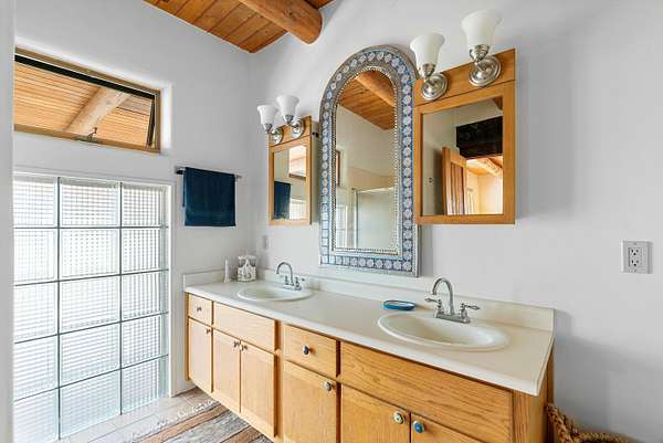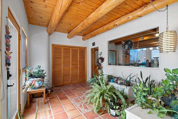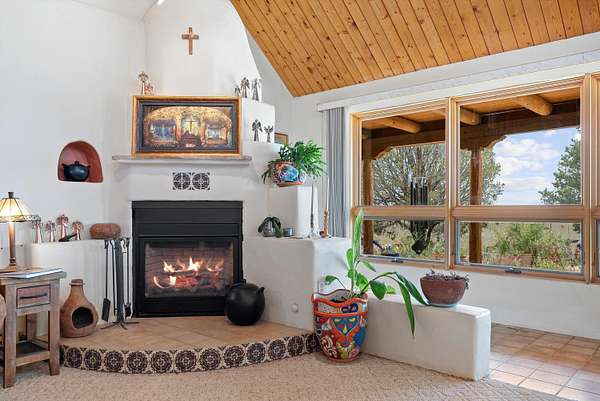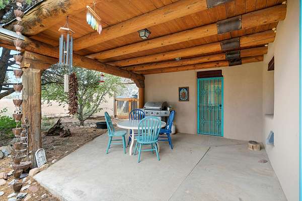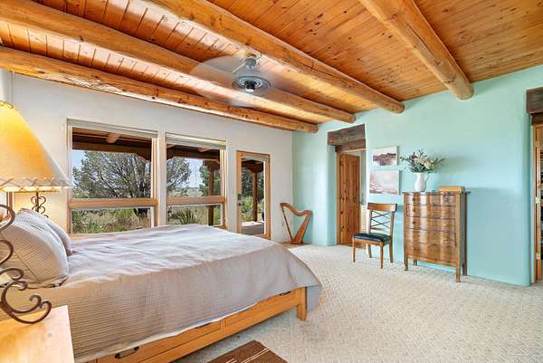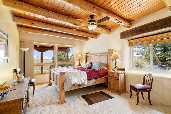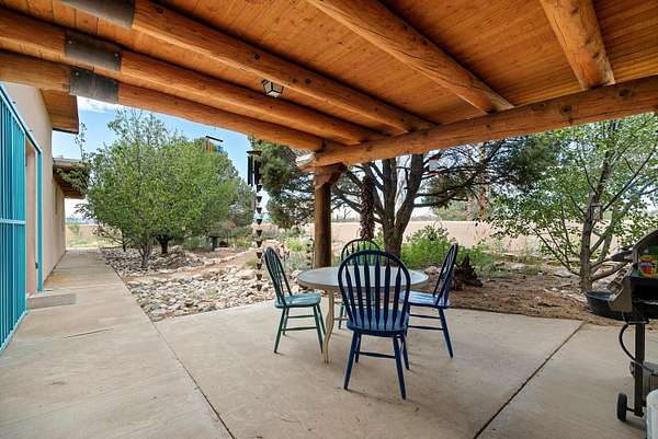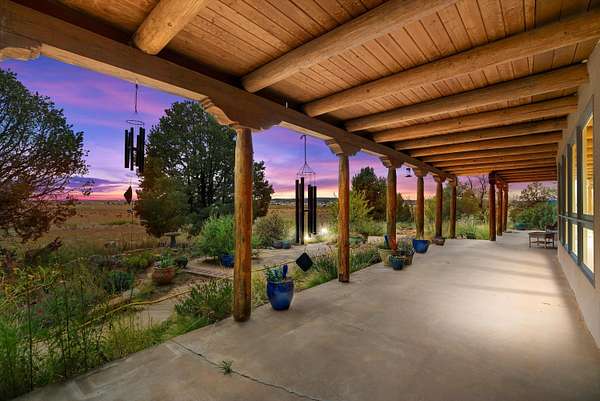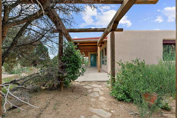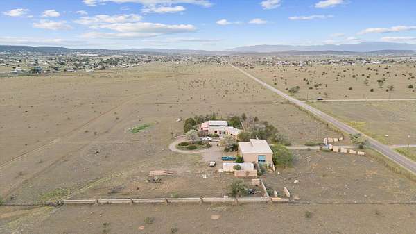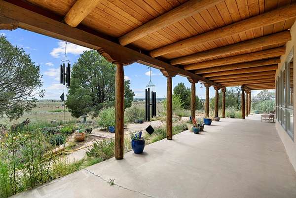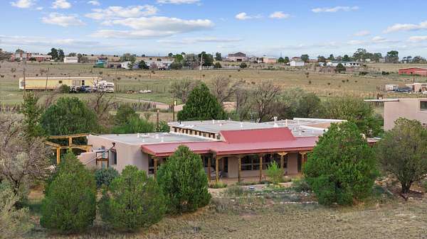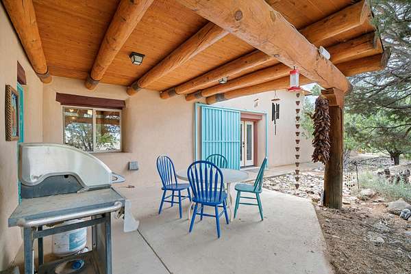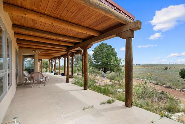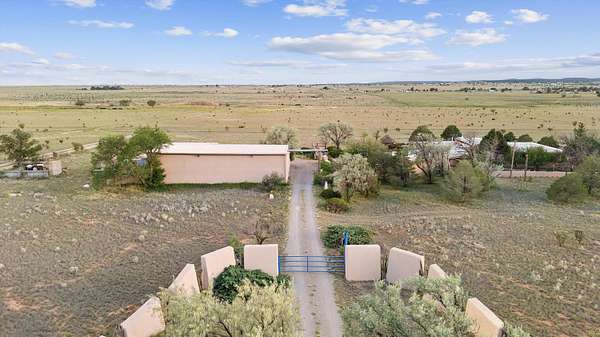 Discover the charm and essence of New Mexico in this custom home, set on a serene 7.5-acre lot. With 3-foot-thick walls, exposed viga beams, and pine ceilings, this home blends traditional craftsmanship with modern comfort. The expansive great room boasts cathedral ceilings, creating an open and airy atmosphere. The spacious bedrooms, versatile kitchenette, and large country kitchen with custom countertops. Enjoy the many outdoor entertaining areas to take in 360 degree views. A 2400sqft+ workhop provides versatily. Many more ammenities, a must see home!