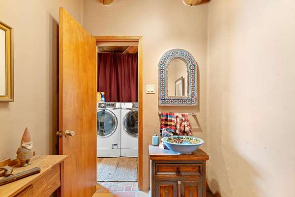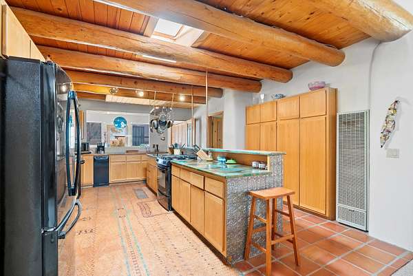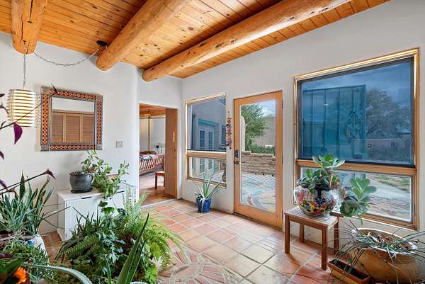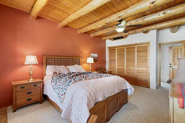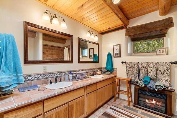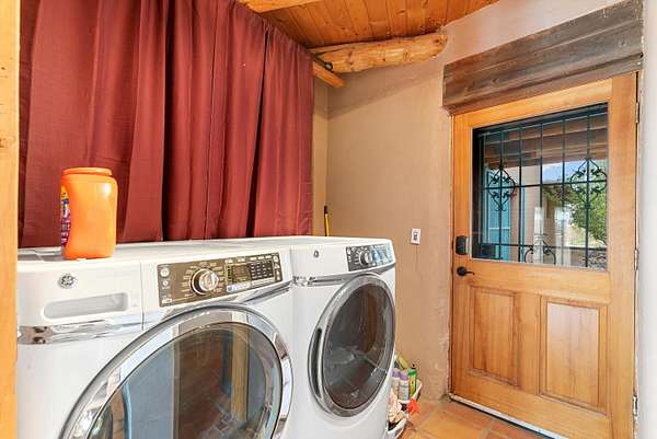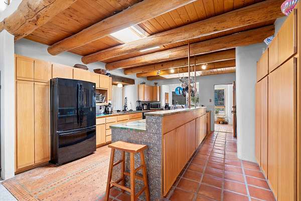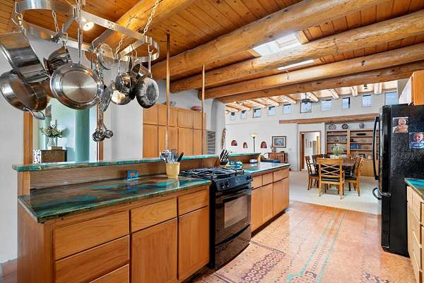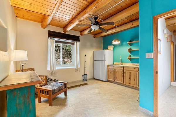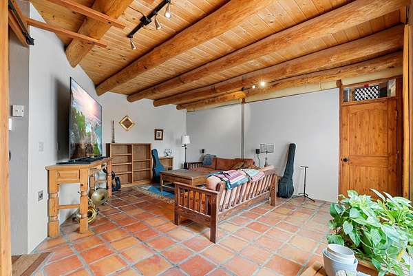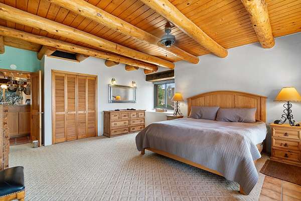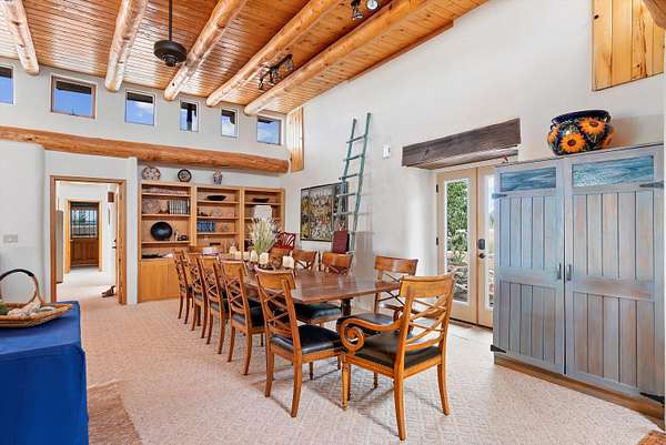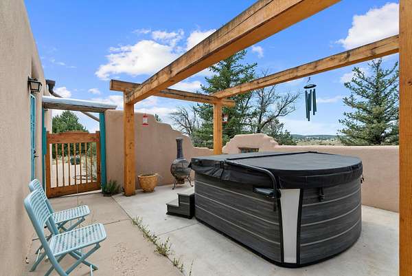 Discover the charm and essence of New Mexico in this custom home, set on a serene 7.5-acre lot. With 3-foot-thick walls, exposed viga beams, and pine ceilings, this home blends traditional craftsmanship with modern comfort. The expansive great room boasts high ceilings, creating an open and airy atmosphere. The spacious bedrooms, versatile kitchenette, and large country kitchen with custom countertops. Enjoy the outdoor areas to take in 360 degree views. 2400sqft+ workhop provide versatil
