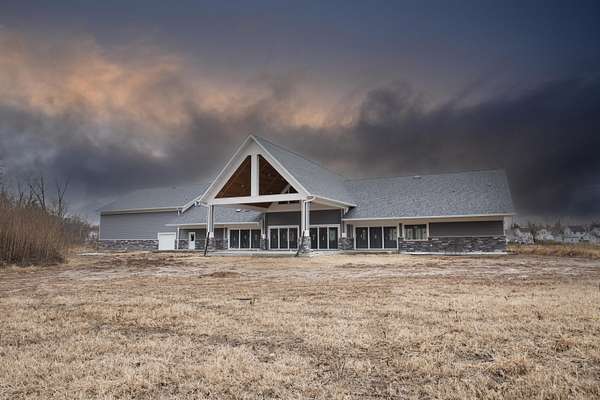 Priced fully finished! Amazing opportunity to get into a custom sprawling ranch and customize select finishes, colors, and design. This ranch offers 9,000 sq ft of living space with 5 bedrooms and 2.5 baths, plus a clear-span basement with no support pillars. The 29' x 23' Great Room has vaulted ceilings and a loft overlooking the 30' x 30' covered patio with outdoor kitchen rough-in. Luxury primary suite includes a 540 sq ft bedroom, spa bath with zero-step entry shower, Kohler fixtures, oversized walk-in closet, and hidden bonus room. Radiant heat throughout including garage, fully wired smart home, sunroom with skylights, office, hidden vault room, and 48' x 51' heated garage with tall overhead doors for 6 vehicles. Private 5-acre lot with city/sewer with natural screening.
