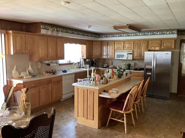 Est $2,426/moPride of ownership. Estate sale-everything inside home to be sold. One owner-all brick one level home. 3 bedrooms, 2 full baths. Gracious sized rooms. Kitchen open to dining area. Large eat-in kitchen, covered patio area, fenced area. Detached garage with drive thru area and another single garage with storage on level 2.17 acres. Small creek on back of property line. HVAC 4 months old. House roof age 17 years. shop roof age 6 years. Windows installed 1994.