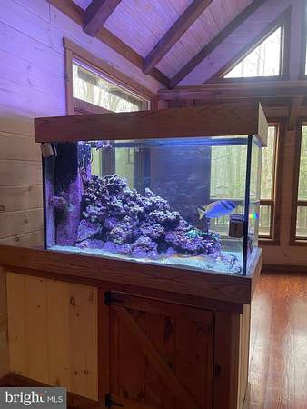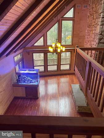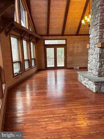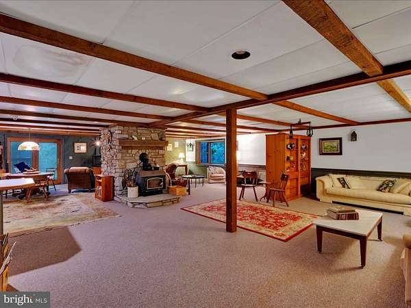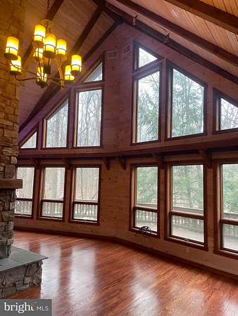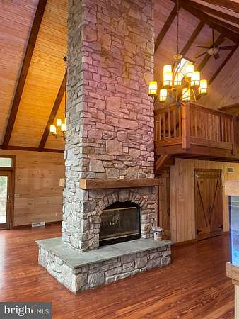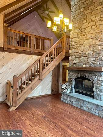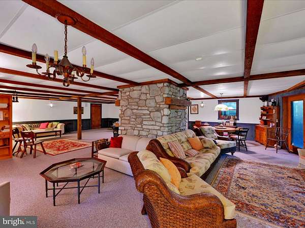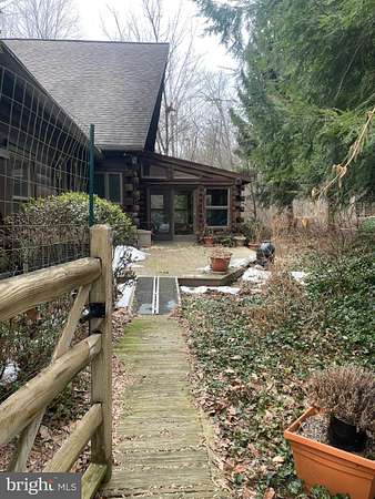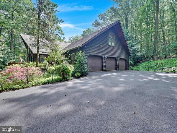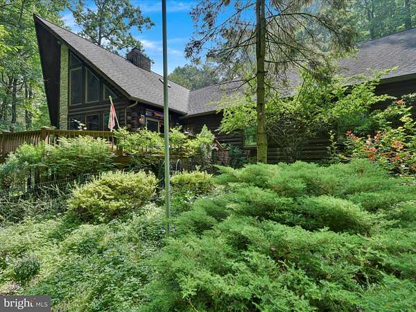 LOCATION LOCATION!! Close to PA turnpike, RT 322, RT 72. Welcome to Spring Hill Acres a Private A-Frame Retreat on Over 8 Wooded Acres. Plenty of possibilities with this home. Own as a second home and can be used as a short/long term rental or live in your own private secluded home. Tucked away in the heart of Spring Hill Acres, this stunning A-Frame log cabin-style home offers unmatched privacy, charm, and space on over 8 acres of mature woodland and beautifully landscaped land. Featuring 4 bedrooms, 3 full baths and a flexible floor plan, this home is ideal for those seeking both comfort and connection to nature. Enjoy first-floor living with an open-concept design showcasing a gourmet kitchen, large dining area, and a stunning double-sided stone fireplace in the living room. French doors open to a wraparound porch, perfect for entertaining or quiet mornings in the fresh air. The owner's suite includes private deck access, a walk-in closet, and a spa-like bath with roll-in shower and double vanity. Upstairs features a loft, three large bedrooms, and a full bath with skylight. A separate stairway from the bonus room over the garage offers additional privacy--great for guests or multigenerational living. The finished lower level boasts a family room with wood-burning stove, walk-out access, a wet bar, and a wine cellar. Enjoy a 4-season sunroom for a year-round birdwatching, a 3-car garage, and thoughtful upgrades like a geothermal HVAC system, automatic generator, and security driveway sensors. Outside, explore landscaped gardens, a fenced 2-acre pet area, a rose garden, and a tranquil fishpond with a waterfall and stone path. The newly paved driveway includes sensor lighting and mid-way parking pad. This peaceful, well-appointed home blends rustic elegance with modern convenience. Don't miss your chance to tour this private paradise! Close to major highways and shopping. This property can be also used for short term rentals per township .
