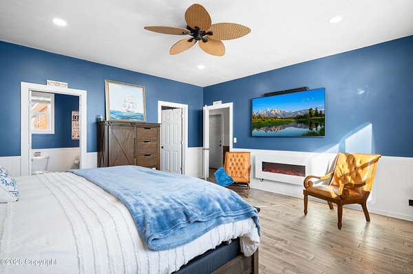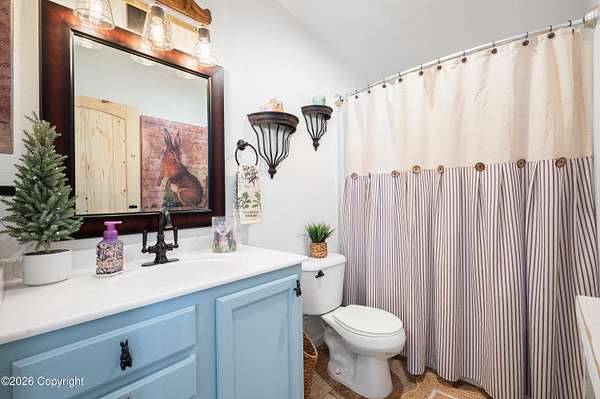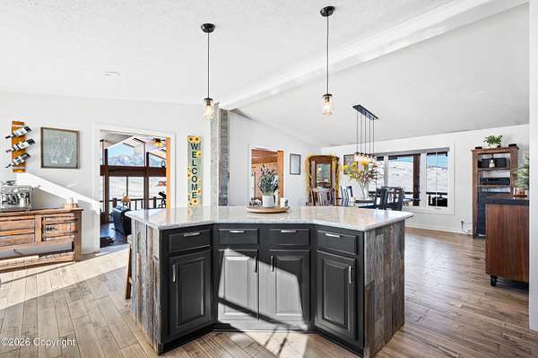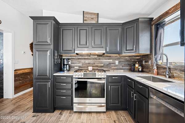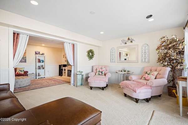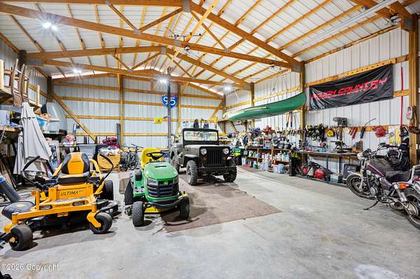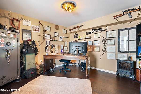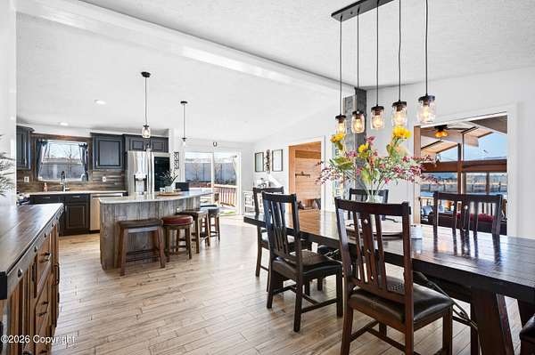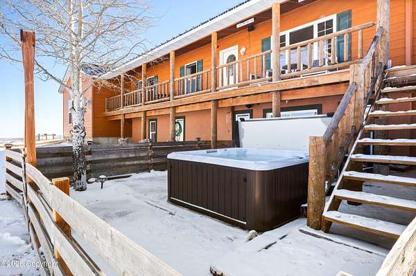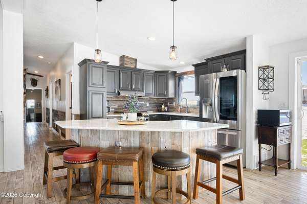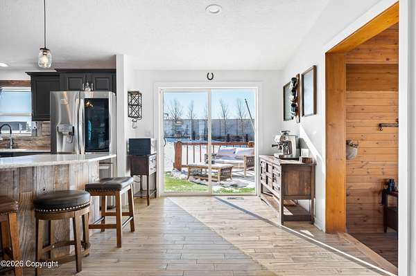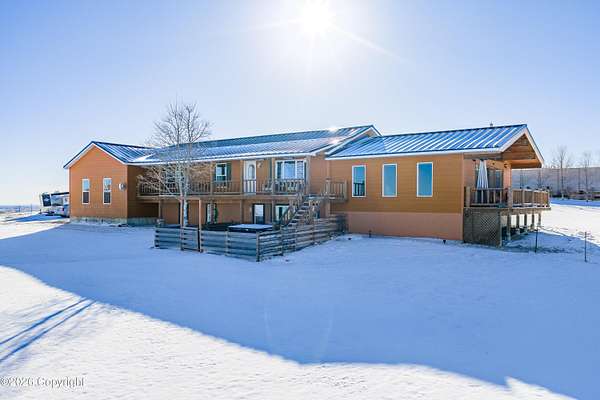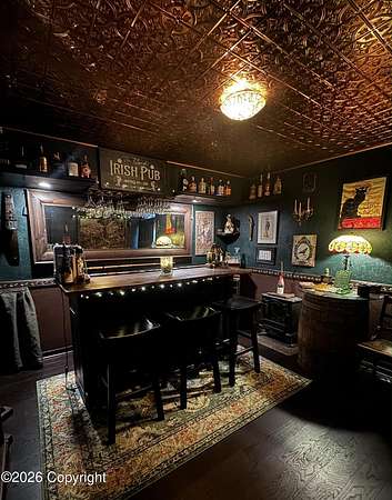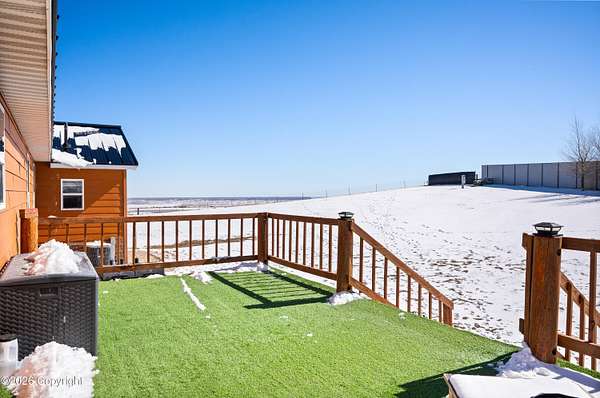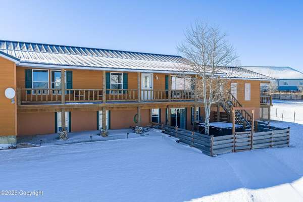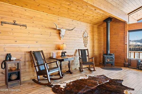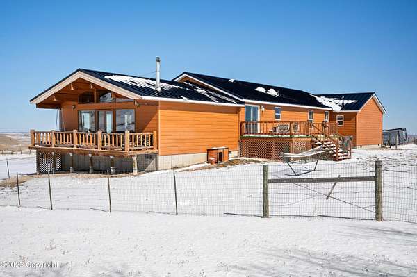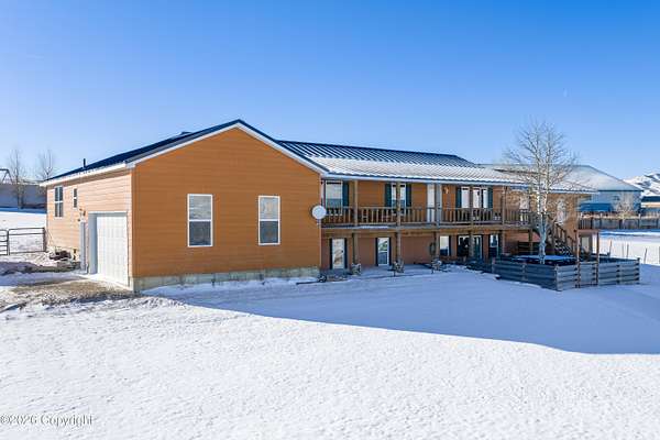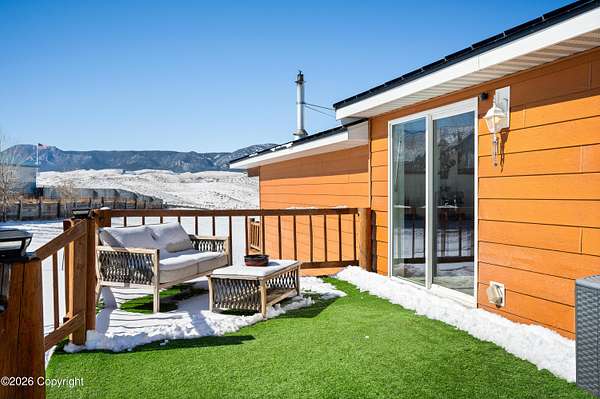 Perched high above the storybook town of Buffalo, where the mountains rise boldly in front of you and endless prairie stretches for miles behind, this is more than a home--it's your private Wyoming escape. From sunsets over the peaks to starlit nights in your heated travertine patio jacuzzi, every inch of this 3,700 sq ft retreat was built to impress, endure, and invite you to stay just a little longer. Designed for both rugged living and refined comfort, the property is fully grazeable--cleared, pristine, and ready for horses, kids, or both. A fully equipped 3-stall barn with power, tack room, washdown station, and trot yard makes this a dream for equestrians, and thousands of acres of public land are walking distance . The massive heated Cleary steel shop and 50-amp RV hookup offer... unmatched versatility for work, toys, or guests. Step inside and the tone shifts to elevated luxury-- 3/4" hardwood floors, custom stonework, and a chef's kitchen anchored by premium quartz countertops. Entertain effortlessly with your own Irish pub and wet bar, or settle in for movie night in the 7.2 surround sound home theater. Every bedroom captures sweeping mountain views, while remote-controlled blinds add a touch of modern convenience. Three elevated decks frame panoramic vistas in every direction. Beneath it all, thoughtful upgrades ensure peace of mind: freeze-proof PEX plumbing, whole-home water filtration and softening, prewiring for a remote generator, and even a reinforced cinderblock tornado room. And perhaps best of all--no HOA. No compromises. Just wide-open freedom wrapped in rugged luxury. Whether you're seeking self-sufficiency, space to roam, or a place that simply takes your breath away every single day... this is it. By appointment only. Homes like this don't wait--and neither should you. Reach out to April Poley, the listing agent,, for the amenities list and additional information.