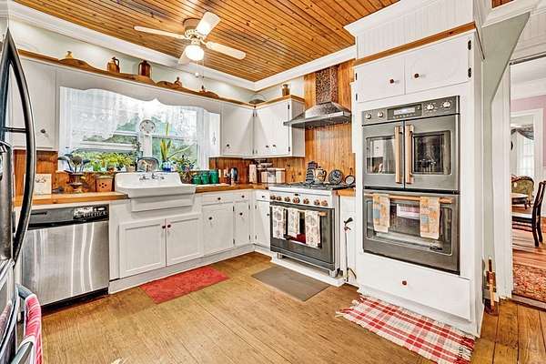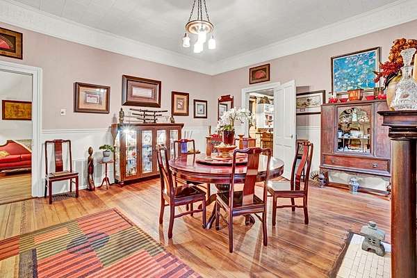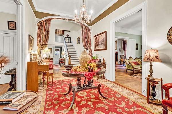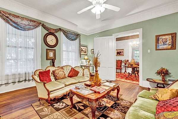 A timeless 1883 residence set amid nearly three acres of manicured grounds. The exterior exudes elegance and heritage while offering privacy and space. Experience the surroundings from the grand 1250 square foot wraparound porch that captures the spirit of Southern Hospitality. Whether relaxing on the swing or entertaining guests, this remarkable space reflects the grace and grandeur of a bygone era. Step through the original double doors into an expansive foyer showcasing high ceilings and preserved hardwood floors that set the tone for this historic home. The grand Foyer leads seamlessly into the formal living spaces and dining, each designed for gracious entertaining and showcasing the home's architectural significance. The kitchen has been thoughtfully renovated to blend modern convenience with vintage charm. The layout and generous workspace is perfectly suited for both everyday living and entertaining. A spacious first floor primary suite offers comfort, convenience and privacy with a king bedroom and en-suite bath. All bathrooms maintain historical charm with tasteful updates, ensuring comfort without sacrificing authenticity. The four bedrooms and three baths upstairs provide flexibility for family or guests, each room reflecting the home's classic character. Outdoor living is elevated with a generous screened porch that extends the homes gathering spaces into nature. The in-ground pool is beautifully integrated into the landscape, offering resort-like amenities with ample decking and picturesque views. Walk downtown to shopping and restaurants. Take a historic tour of the Burk Stark Mansion, McGowan House, welcome center and the Abbeville Opra House. There is so much more to share about this home. Reach out today and discover everything it has to offer.