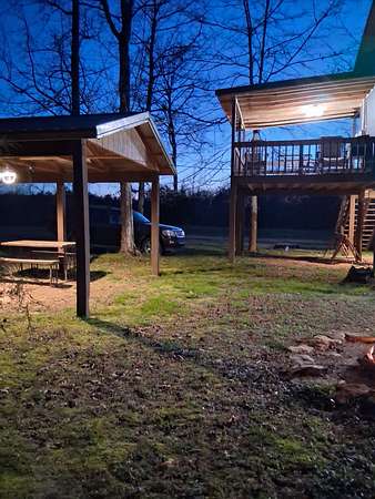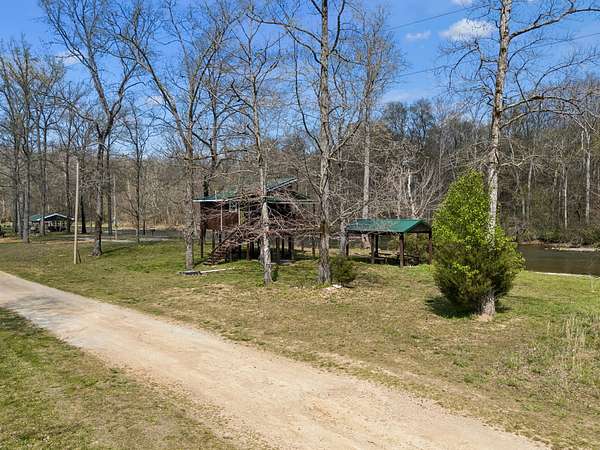 The property features a cozy cabin with septic in place and electricity available, along with covered porches designed for taking in the views and enjoying the sounds of the river. A 12x12 covered pavilion provides the perfect spot for outdoor dining, entertaining, or simply relaxing by the water.