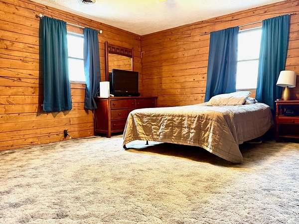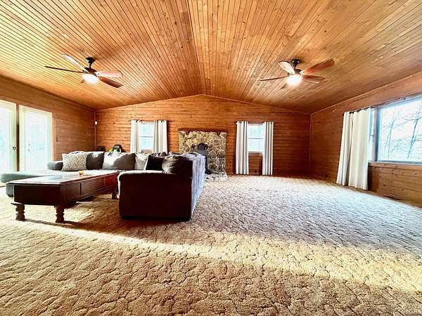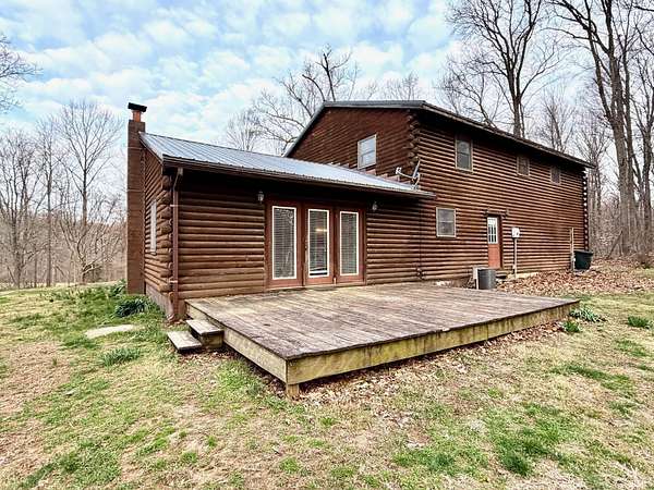 Log cabin on wooded acreage! This charming 2-story log home sits on 5.99 acres just outside Mitchell and offers the privacy and peaceful setting many buyers are searching for. With approximately 2,460 sq ft, the home features 3 bedrooms and 2.5 baths. The large living room with woodburning stove creates a warm and inviting gathering space. The spacious primary suite includes a walk-in closet plus three additional closets and a private full bath. Relax on the covered front porch and enjoy the quiet country surroundings. Property also includes a 30×24 attached 2.5-car garage with plenty of room for vehicles, storage, or workshop space. A great opportunity for buyers looking for country living, privacy, and a rustic log cabin setting.