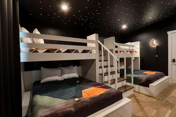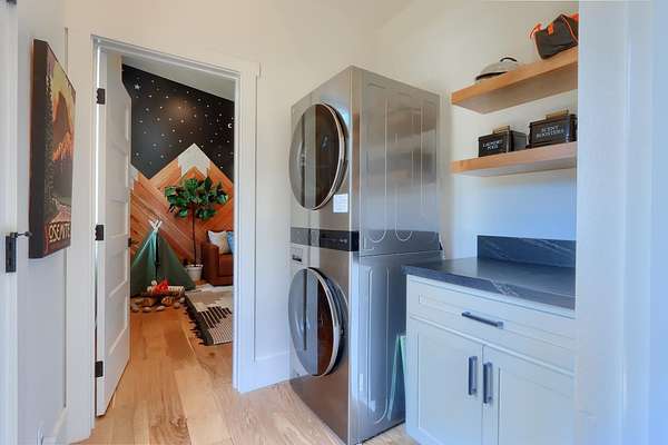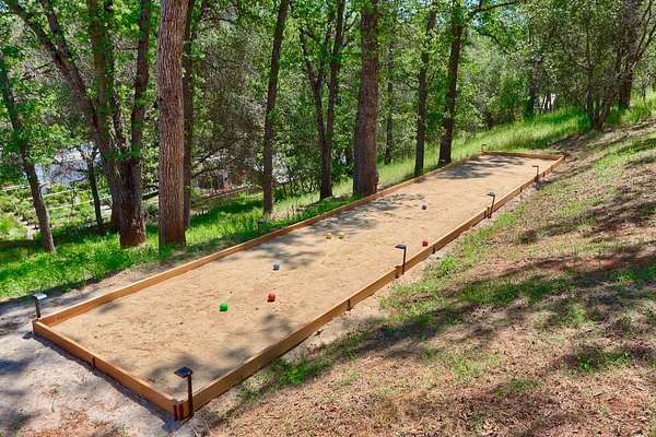 Welcome to a truly one-of-a-kind retreat in the heart of Mariposa-where thoughtful design, modern efficiency, and unforgettable guest experience come together seamlessly. Built in 2023, this stunning home showcases high-end finishes and curated interiors, offered fully furnished and turnkey with pieces sourced from premium brands like Pottery Barn, West Elm, and Restoration Hardwareready to enjoy or continue as a successful short-term rental. The open-concept living space is filled with natural light and anchored by a beautifully designed kitchen, ideal for everyday living or hosting guests. A secondary living area sits adjacent to a custom-built bunk room, creating two distinct gathering spaces-perfect for multiple families, larger groups, or a dedicated kid/teen hangout zone. The flexible floor plan also offers long-term versatility, with potential to convert the secondary living area into a spacious primary suite, complete with a larger bathroom and walk-in closet already in place. Designed with efficiency and resilience in mind, the home features owned solar (no true-up), an electric car charging station, a durable metal roof, and fire-conscious construction with minimal wood exterior materials. Outdoor living shines with approximately 900 sq ft of composite decking, including a covered area, fire pit, and ambient lighting-ideal for relaxing or entertaining. A full-sized bocce ball court adds a unique, resort-style touch. Significant infrastructure has already been completed, including a $250,000 engineered retaining wall, with additional space above the home for a potential future structure. Currently used as both a personal getaway and a successful short-term rental, this property offers immediate income potential with a proven track record. Located within walking distance to downtown Mariposa's shops and restaurants, it's perfectly positioned for both owners and guests. Additional features include concrete siding, a bear-proof trash enclosure, and a setting that blends privacy with convenience. This is more than just a home-it's an experience.