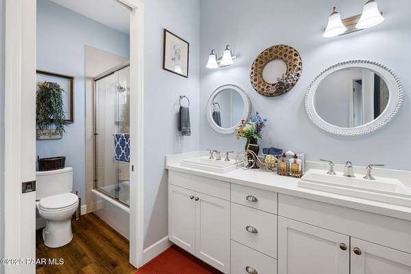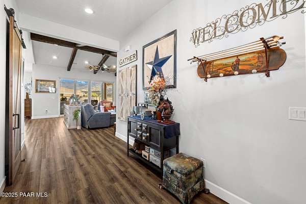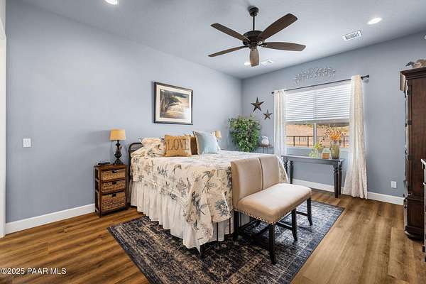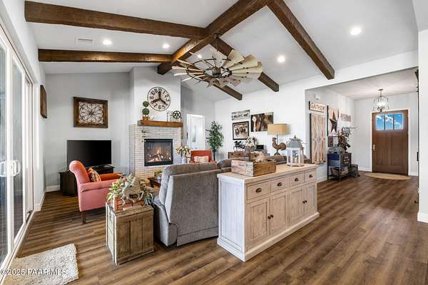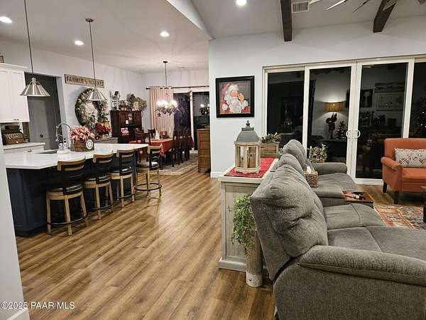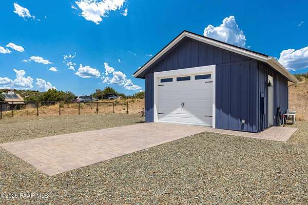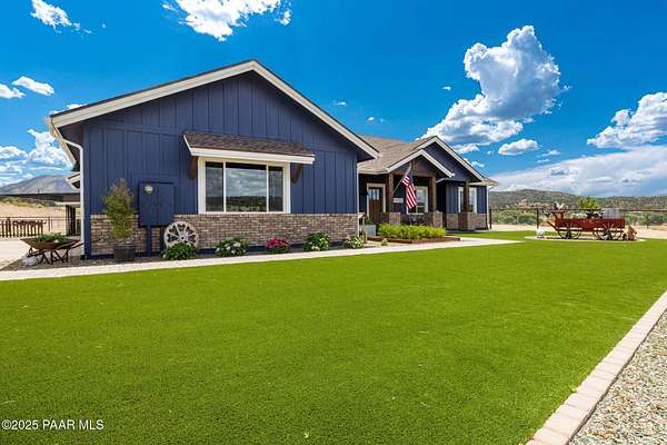 Move-in-ready, immaculate horse property. Offered well below construction cost! This 2022, modern farmhouse spread sits on 4 acres in desirable Williamson Valley--ready for you, saving you the time, stress, and expense of building new or upgrading a dated home. Just 15 min from town, this single story home blends style, function, and easy living. Spacious, open floor plan, energy-efficient, custom finishes, 10' ceilings, LVT floors, custom soft-close cabinets, high end appliances, Lg walk-in pantry, Lg laundry room, abundant storage, gas fireplace, high-speed internet, & full house Generac. 3-car garage, 20x30 finished workshop w/ 9' door & 220V that could easily be converted to guest casita. Fully fenced, horse-ready w/ 2,464' barn, 4 16x16 stalls, turnouts, feed/tack rooms, hot wash rack, and a breezeway positioned to capture Granite Mountain views. Flexible barn layout could accommodate an arena if desired. For the car enthusiast or contractor the barn could be converted into a shop or storage. Trailer/rv parking, chicken coop, shed, raised garden beds, fenced dog/cat run, artificial turf, fruit trees, & auto irrigation. Private well, plus additional 1550 gallon water tank. No HOA. No power lines in sight. This thoughtfully designed equestrian gem truly has it all- modern comfort, scenic beauty, and ready-to-enjoy rural living.