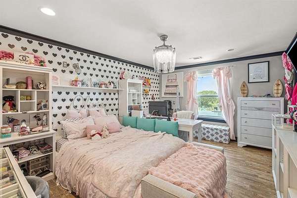 Step outside to your private resort: a 45,000-gallon, 9.5-foot-deep heated infinity-edge pool and hot tub, complete with outdoor kitchen, multiple TVs, and covered seating area--ideal for gatherings year-round. The covered batting cage, half basketball court, and sand volleyball court offer endless recreation options, while Turkey Creek feeds into a stocked pond just behind the house, perfect for fishing or relaxing.