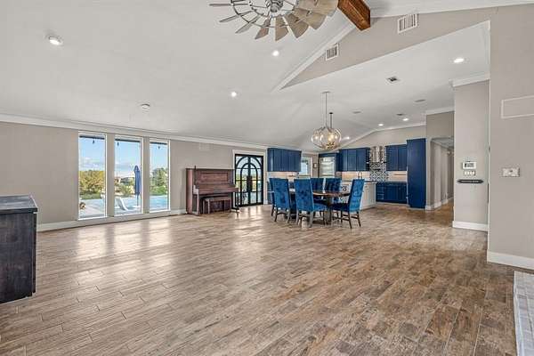 - Built-In Features, Chandelier, Decorative Lighting, Eat-In Kitchen, Flat Screen Wiring, High Speed Internet Available, Kitchen Island, Open Floorplan, Pantry, Sound System Wiring, Vaulted Ceiling(s), Walk-In Closet(s)