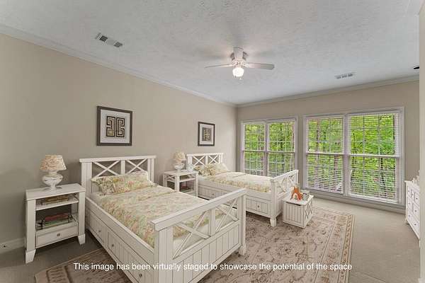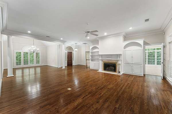 Tucked away on a truly one-of-a-kind 5.5-acre lot, this 4,481 sq ft full-brick basement home is a rare gem offering unmatched tranquility & privacy. Nestled alongside Standing Boy Creek, the property includes its own beach area. This spacious home features 4 bedrooms, 3 full baths, and 2 half baths, with two ensuite bedrooms located on the main level. The front porch opens into a gracious entryway leading into the open concept Family room, Dining area, & eat-in Kitchen. Solid hardwood flooring runs throughout the main living areas, creating a seamless flow. The Family room has built-ins, a wood-burning fireplace, recessed lighting, and 14-inch crown molding. Natural light fills the adjacent Sunroom offering breathtaking views. The eat-in Kitchen features a breakfast bar, center island, gas cooktop, double ovens, a walk-in pantry, and plenty of cabinetry. A vaulted formal Dining room is perfect for those special gatherings. Just thru the family room, the back deck is an extension of the home and offers a great place to take in the sounds of nature. The Master suite is on the right side of the home & has access to the back deck, a modern gas linear fireplace & a spacious dressing area with 2 walk-in closets. The renovated bath boasts 2 vanities with quartz countertops, a stand-alone soaking tub, & tile walk-in shower. On the opposite side of the home, the 2nd ensuite features a walk-in closet, large vanity, & tub/shower combo. Downstairs, the finished walk-out basement adds 1,328 square feet of versatile living space. It includes 2 bedrooms, a full bath with double vanity, & a spacious 20'x21' Bonus room featuring a wood-burning fireplace. Also included are 3 unfinished spaces totaling 715 square feet, including a half bath. 3-Car side entry Garage. This home is more than a residence-it's a sanctuary. Whether you're enjoying the peaceful sounds of nature or entertaining in the thoughtfully designed interior, this rare property is a true gem in a breathtaking setting.