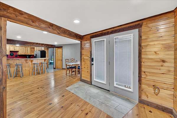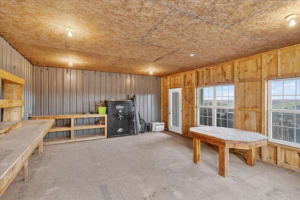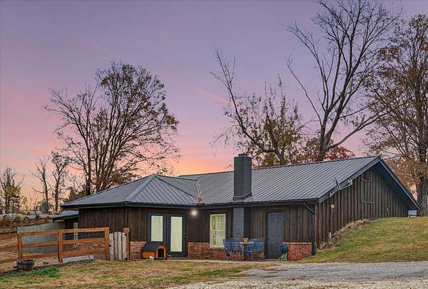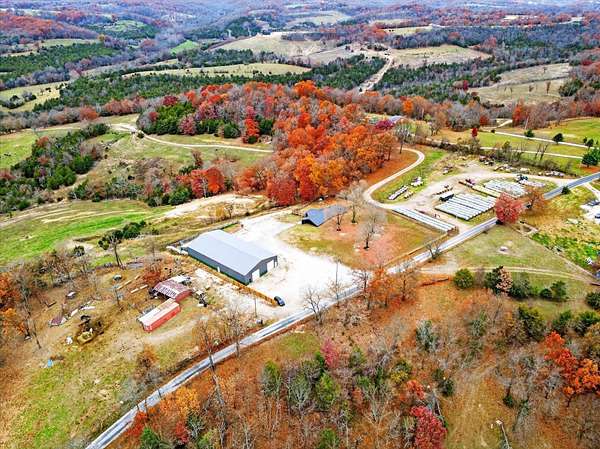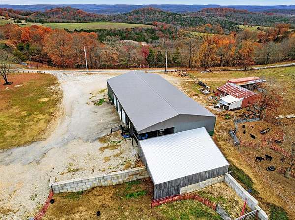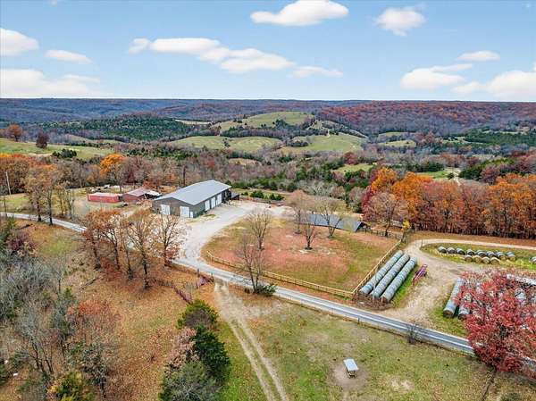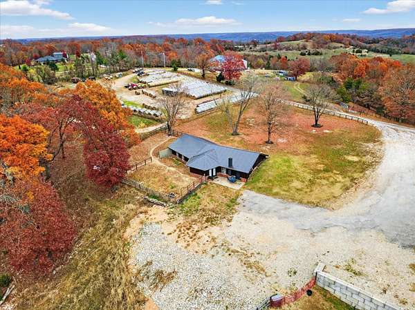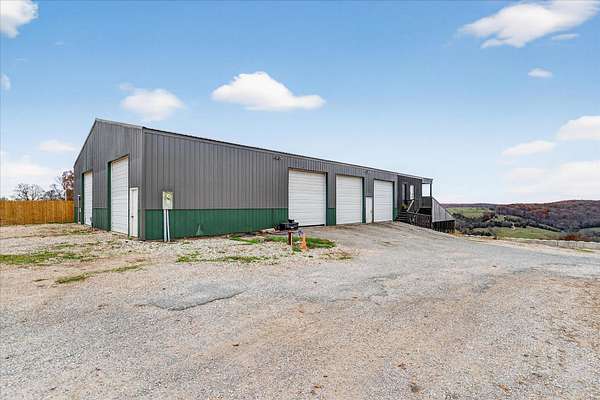 Looking for a home with a view? This 4-bedroom, 1-bath earth-berm home sits on just over 3 acres and delivers breathtaking, long-range views from multiple vantage points. Whether you're enjoying your morning coffee or winding down in the evening, the patio is the perfect place to soak in peaceful scenery and unforgettable sunsets.Inside, you'll appreciate the warm, rustic character with a stunning stone fireplace, exposed wood beams, and an open-concept layout designed for comfortable living and easy entertaining. The kitchen features wood countertops, a wall oven, separate electric cooktop, and plenty of cabinets for storage.This home was thoughtfully designed with expansion in mind. Two rooms already have plumbing in place, offering the opportunity to easily add a second or even third bathroom, or create a spacious primary suite. The structure was also built to support a future second-story addition making it a walkout basement style home, and the fully floored attic is already equipped with ductwork for central heat and air if you choose to expand.Recent exterior improvements include updated wood siding along with a new metal roof, soffit, and gutters (July 2025). A dedicated John Deere/storage room adds even more practical space.One of the property's standout features is the impressive 54x100 insulated shop with concrete floors, electric, five 12x12 overhead doors, a half bath, and new roof and trusses in 2024. At one end, a 24x28 bonus room with expansive windows captures miles of countryside views and opens onto a covered deck, a perfect spot to relax. Below that, a 27x40 covered cattle pen is ready for livestock, equipment, or additional storage.Conveniently located approximately 25 minutes to Walmart and Highway 65 in Ozark, and about 35 minutes to Springfield, this property offers the perfect balance of privacy, functionality, and convenience.If you've been searching for space, versatility, and incredible views, this one checks all the boxes.