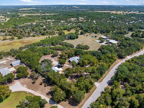 An amazing opportunity to own your own Hill Country Retreat! Just a short drive out of Austin with an ultra-low tax rate, this unique and charming property has so much to offer. One of a kind, the home is custom-built by a master cabinet maker with birch wood throughout. Multiple outbuildings include an air-conditioned man cave with a bedroom, full bath, a 50 amp hookup for an RV, and an oversized garage. Secluded and private, yet conveniently located just 10 minutes from everything you need in town, this 3.5 acres is full of native oaks and beautiful scenery. An outdoor garden, a fire pit area, and a sparkling above-ground pool with an extensive deck and pergola are just some of the many custom features that you will love about this incredible property. NEW Water Heater & HVAC 10/25 See this incredible property today!