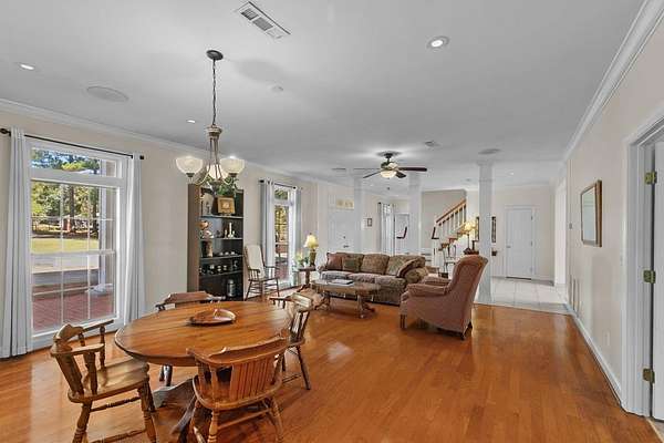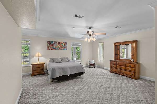Southern elegance meets exceptional space and privacy in this stunning 3-story estate located in the desirable Rehobeth School District, in a prime area for schools and medical access. Priced well under appraised value ($1.1m), this home offers 6 bedrooms, 5.5 baths, and 7,152 sq ft of living space, plus nearly 2,000 sq ft of bonus areas, totaling over 9,000 sq ft. Situated on 3.5 acres with no HOA, the property offers rare privacy with no ability to build behind the home. Enjoy a natural setting with two nearby creeks for fishing or swimming, frequent deer sightings, and peaceful surroundings. Outdoor living shines with a 17x34 Gunite pool, 20x20 covered porch, 12x12 gazebo, and a fire pit area with covered seating. The back deck and interior railing have recently been updated to code. Additional features include a 3-car garage with a 900+ sq ft loft/game room, two workshops (40x60 with half bath and 40x32), and an RV carport with water and electricity. A golf course is just 1 mile away. Located 78 miles from Panama City Beach and 12 miles from the Florida state line, this county property allows added freedoms such as recreational shooting and fireworks. With well and county water, this one-of-a-kind estate offers space, privacy, and versatility. This home has had a full inspection and repairs have been made, making it truly move in ready. Call today to see this remarkable property!