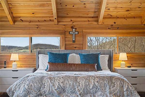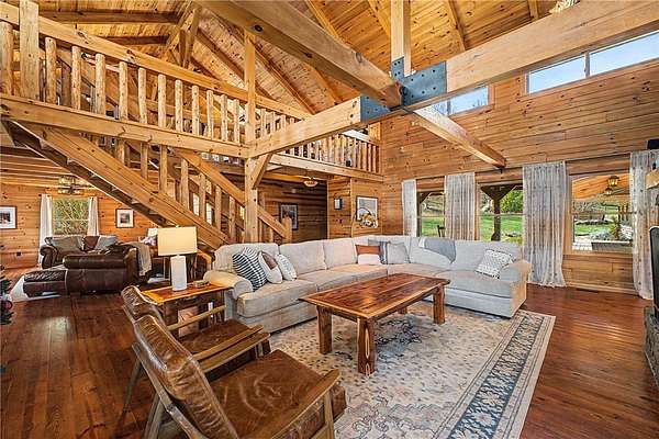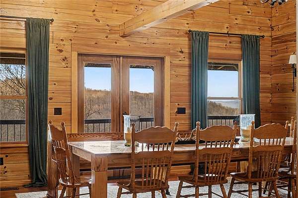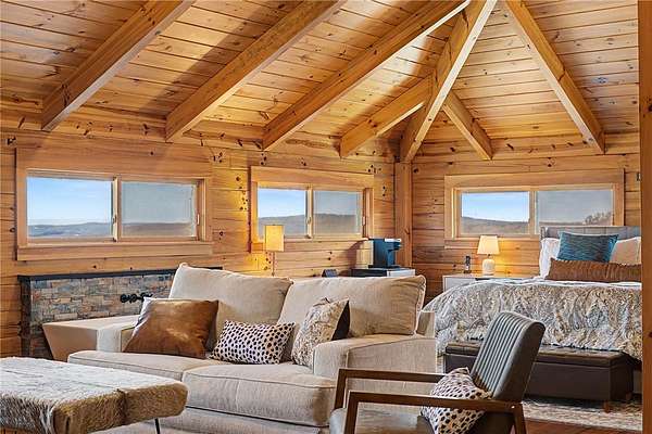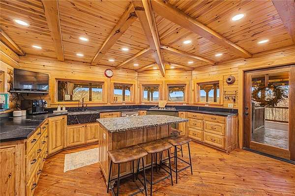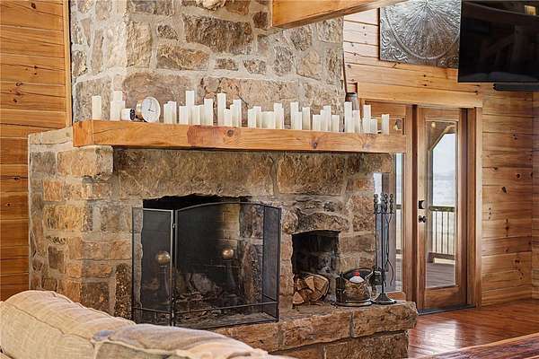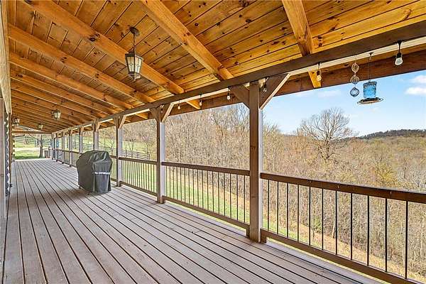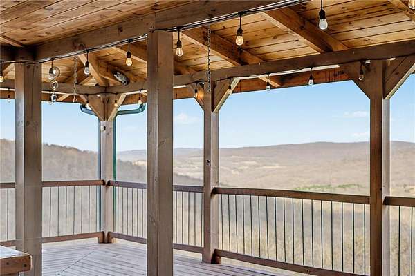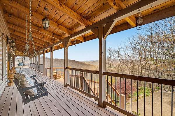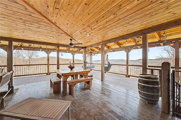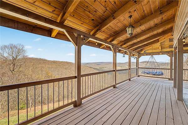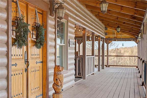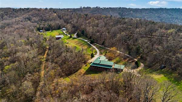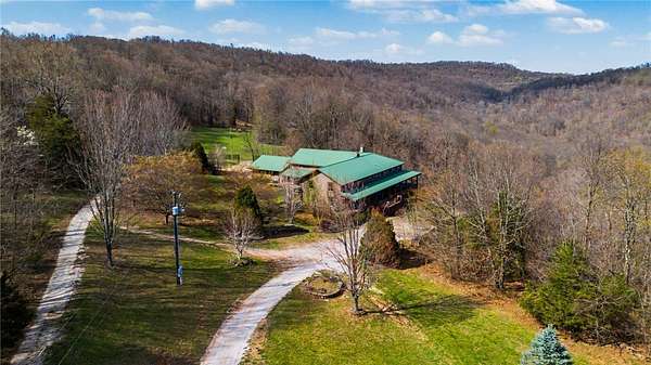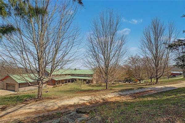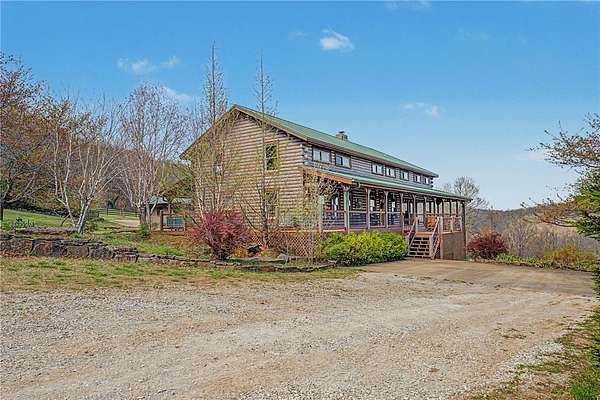 A truly one-of-a-kind legacy estate spanning nearly 100 acres of Ozark landscape, offering breathtaking panoramic views, abundant wildlife, and unmatched privacy. Named the "Black Bear Lodge", this property has endless possibilities such as a family compound, retreat, or hunting lodge. The estate includes separate residences- a custom-built main home, cottage house, and bunk house. The main home is thoughtfully designed to capture the surrounding views, with scenic vistas from the kitchen, a floor-to-ceiling native rock fireplace in the living area, formal dining room, and an upstairs loft game room. With 5 bedrooms and 4.5 bathrooms, the home offers ample space. The land itself features two pastures, a pond, a creek, and trails through the property. A barn with covered space provides additional storage and a place to enjoy the outdoors year-round. Known for its diverse wildlife, this sportsman's dream presents a rare opportunity to own a private retreat where the beauty of the Ozarks and adventure come together.