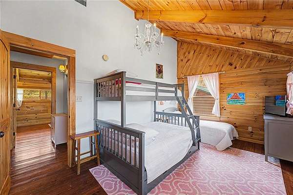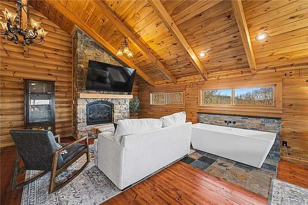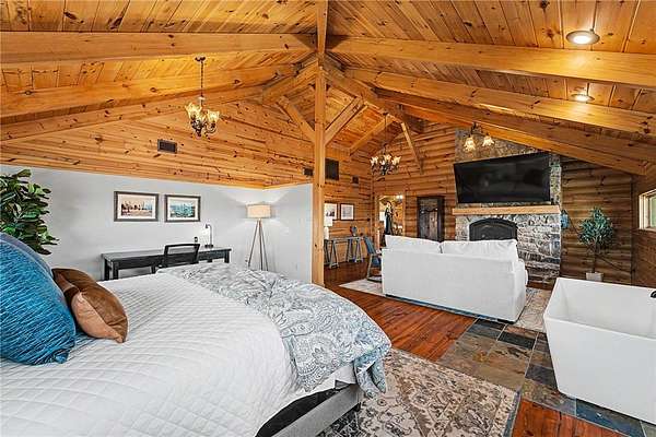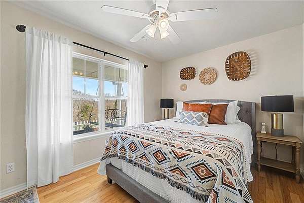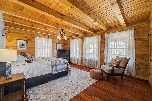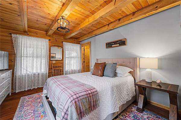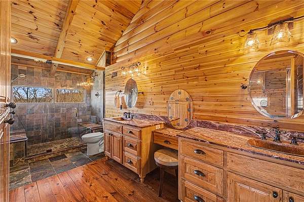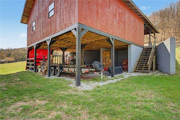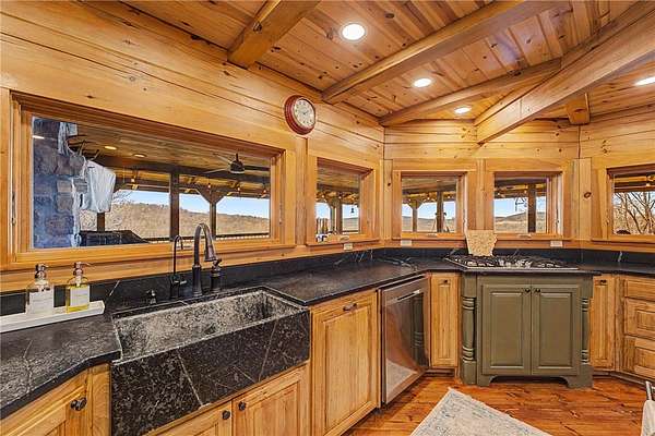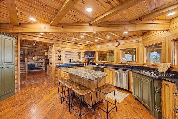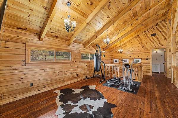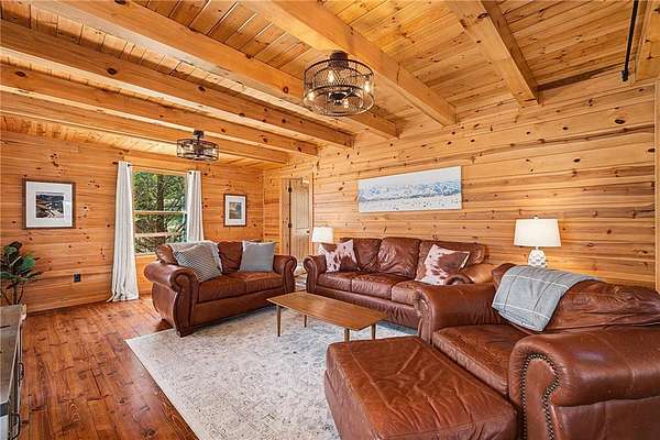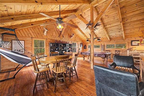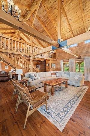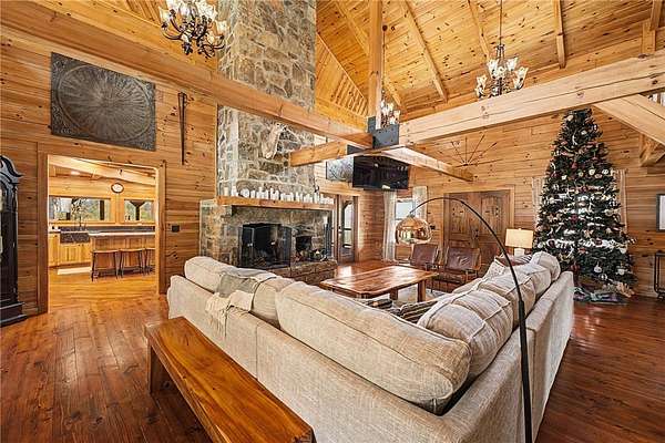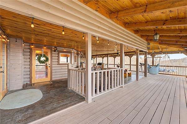 A truly one-of-a-kind legacy estate spanning nearly 100 acres of Ozark landscape, offering breathtaking panoramic views, abundant wildlife, and unmatched privacy. Named the "Black Bear Lodge", this property has endless possibilities such as a family compound, retreat, or hunting lodge. The estate includes separate residences- a custom-built main home, cottage house, and bunk house. The main home is thoughtfully designed to capture the surrounding views, with scenic vistas from the kitchen, a floor-to-ceiling native rock fireplace in the living area, formal dining room, and an upstairs loft game room. With 5 bedrooms and 4.5 bathrooms, the home offers ample space. The land itself features two pastures, a pond, a creek, and trails through the property. A barn with covered space provides additional storage and a place to enjoy the outdoors year-round. Known for its diverse wildlife, this sportsman's dream presents a rare opportunity to own a private retreat where the beauty of the Ozarks and adventure come together.
