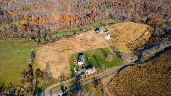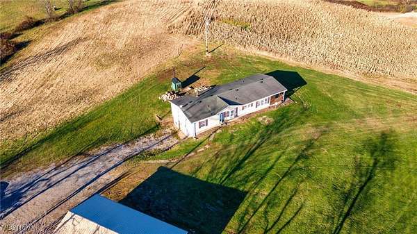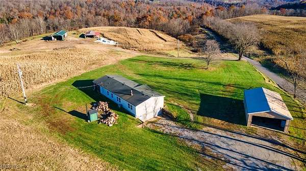 ACREAGE, ACREAGE, ACREAGE! Exceptional 81+ Acre Property with Ranch Home, Multiple Outbuildings & Prime Tillable Land! Discover the perfect blend of comfort, privacy, and productive acreage on this remarkable 81+ acre property, featuring over 50 tillable acres, creek access, and an ideal location just minutes from a major highway and a popular recreation lake area. The inviting ranch-style home offers an en-suite primary bedroom with an updated bathroom featuring a walk-in shower. Enjoy an open-concept layout enhanced by beamed ceilings, a gorgeous mantle, and numerous built-in features throughout the kitchen and dining areas. Provide outdoor entertaining with ease from dining area via patio doors to covered deck/patio. A convenient main-level laundry room adds everyday ease. The lower level expands your living and entertaining space with a full rec room, complete with a bar and walk-out access to the property. Heating efficiency is a standout with an outdoor wood boiler that warms both the home and the detached garage. This property includes multiple well-equipped outbuildings: A detached garage with its own bathroom and 50-amp electric service, Two additional outbuildings, each with 100-amp service and own access from Township Road. This property offers the perfect balance of agricultural value and outdoor recreation.A picturesque creek winds through the land, adding natural beauty and enhancing the overall habitat.Whether you're looking for agricultural use, recreation, or a peaceful homestead with abundant space, this exceptional acreage offers endless possibilities. MINERAL RIGHTS WILL NOT CONVEY SINCE CURRENT OWNER DOES NOT OWN. CAUV (Current Agricultural Use Value) on two of the three parcels. Buyers are responsible for any recoupment of CAUV tax credit. PLEASE DO NOT WALK ON THE PROPERTY WTHOUT ANY REPRESENTATION -- ESPECIALLY DURING AN ACTIVE HUNTING SEASON. Properties like these are rare-CALL TODAY!