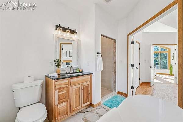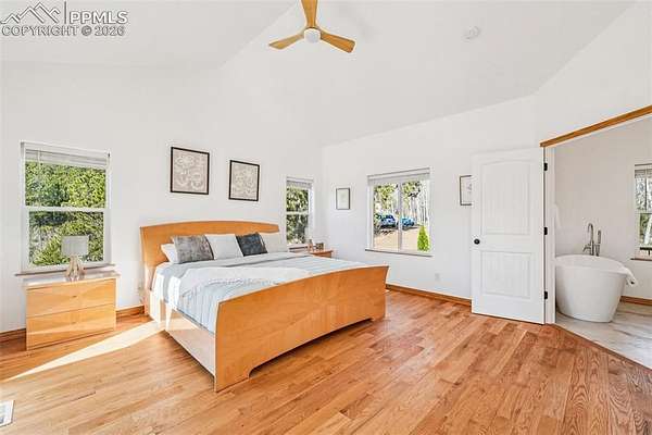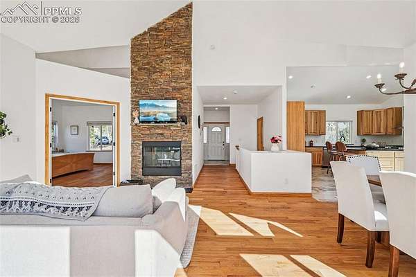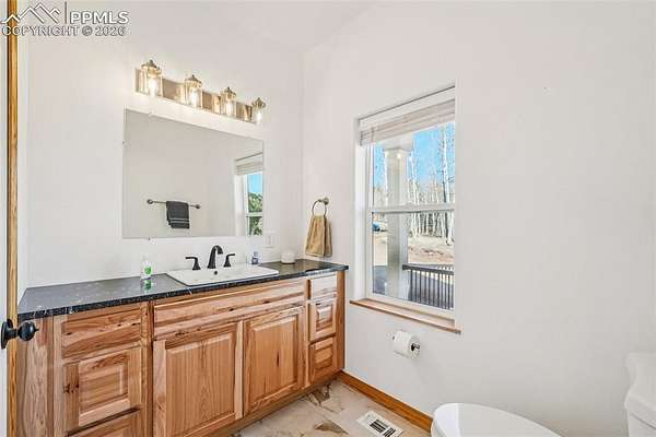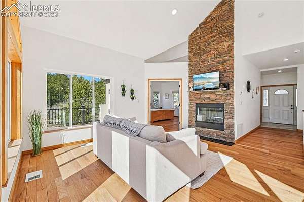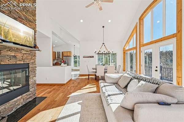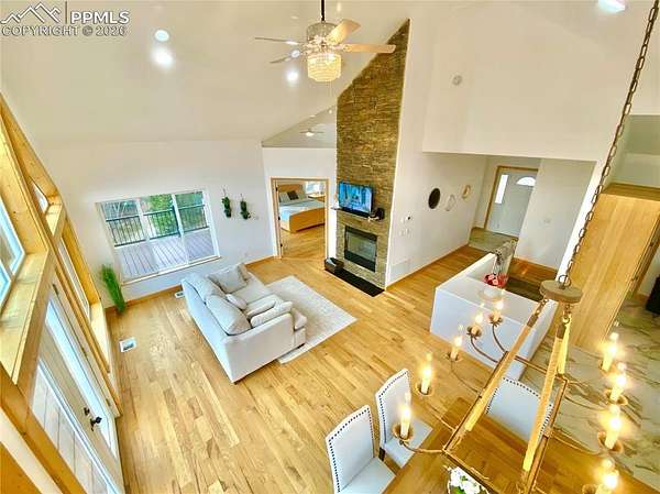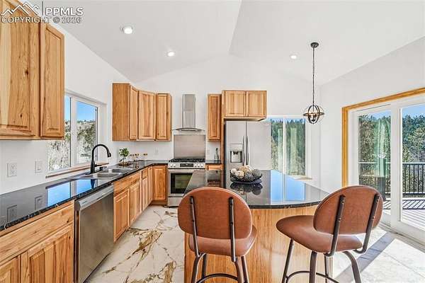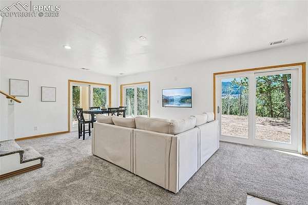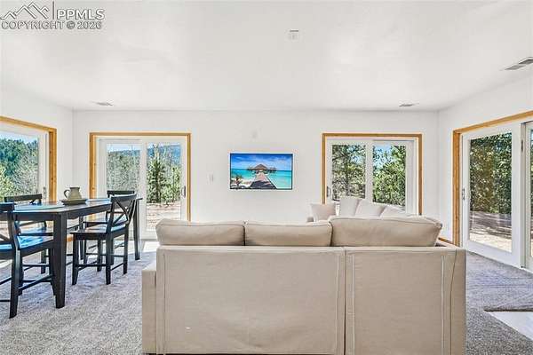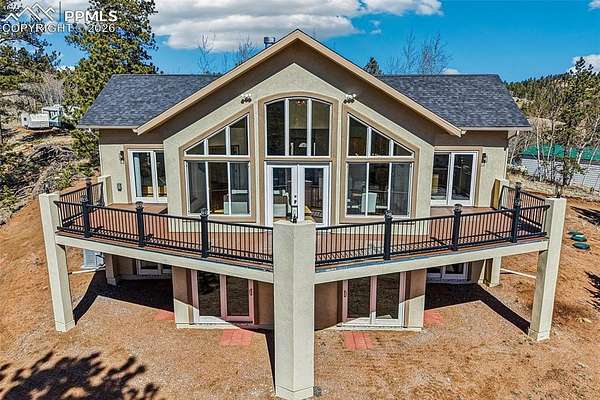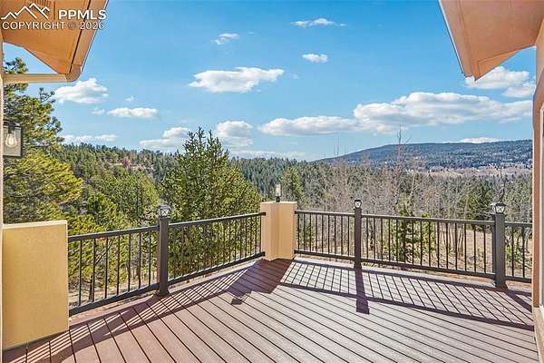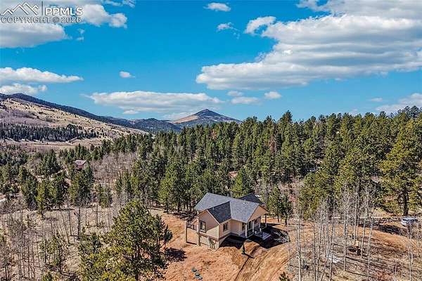 Close in mountain living with breathtaking views! Perfect as a primary home, vacation retreat or investment opportunity - great for an owner occupant or Airbnb. This beautiful custom home on a spacious 3 acre lot backs to open space and features 3 bedrooms (Primary on main, 2 secondary in basement), 2.5 baths, main floor great room, kitchen, finished walk-out basement (family room, 2 bedrooms, full bath) and a detached garage/workshop (2400 fin sq ft home + 720sq ft detached garage). The many windows allow the natural light to cascade in bright & cheerful and showcase the beautiful panoramic mountain views. The finished basement is perfect for guests or that teen wanting their own space. Beautiful upgrades and finishes including hickory cabinetry, slab granite in the kitchen, porcelain tile in the kitchen, wet bar in the walkout basement and wet rooms (baths & laundry)., vaulted / cathedral ceilings, multiple walk-out access points, custom lighting and more. Equipped with a 50-amp hookup for a hot tub and stubbed for gas on the deck - perfect for outdoor entertaining or just enjoying nature. Surrounded by beautiful foliage including Pine & Aspen Trees. A woodburning fireplace, 4-ton AC, ceiling fans and r-49 Climate Pro insulation throughout keeps this home comfortable all year long. Other features include a large garage/workshop with 10' doors and water hydrant, wiring for cable & ethernet; an upgraded 1800-gallon cistern, new septic, a 500-gallon propane tank and 220 service and more. The perfect blend of luxury and comfort makes this home a true oasis. Enjoy all that this stunning home and surrounding area has to offer. This home is a must see. Amenities abound in this fabulous community including a pool, clubhouse w/fitness center, fenced playground and library. Minutes from the town of Cripple Creek. Don't miss your opportunity. Welcome Home!