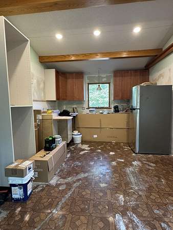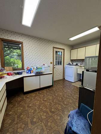Bring your country living dreams to life! This 3 bed, 2.5 bath home on 4 acres offers space, serenity, and so much potential. Relax by the koi pond, plant your dream garden, or tinker in the pole barn, there's room for it all. The bright eat-in kitchen overlooks peaceful acreage, and the walk-out basement adds extra space for hobbies or guests. Bedrooms and laundry are conveniently located on the main floor. Finish the kitchen with your personal touch, cabinets are ready to install, just choose your sink and countertop!