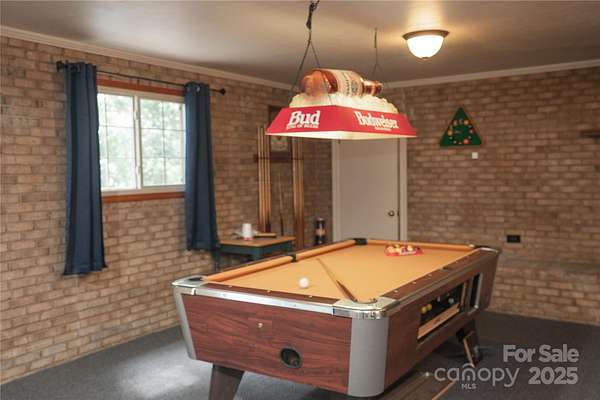Wow! Take a look at this country estate. Beautifully updated brick ranch with walk out basement situated on 3.70 private acres. Family room with wood floors and wood burning fireplace. Nicely appointed kitchen with island and plenty of counter space. Large dining area with small office adjacent. Two guest bedrooms with wood floors one with own suite. Updated hall bathroom. Large owner suite addition with walk in closet and access to 3 seasoned porch. Large own suite bathroom with garden tub in bay window. separate walk in shower and his and hers vanities. Basement has large game room with wood burning fireplace, study (sellers are currently using as a fourth bedroom), a full bathroom and large laundy room. Additional storage. Large patio. Across the street is a detached 2 car garage with carport for additional parking.