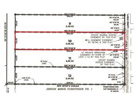 This spacious 6.50 acre lot in the Peak View Ranchettes subdivision offers an impressive amount of land, measuring 212.02 feet wide and 1334.33 feet deep. The property is easily accessible via a county-maintained paved road. You have the flexibility to bring your own builder. Utilities with Rocky Mountain power, already stubbed to the lot. Each lot comes equipped with a culinary water connection through the Water Conservancy District and includes one share in the Peak View Ranchettes Irrigation Company. Notably, the sellers have installed secondary irrigation systems, making it easy to provide water for pastures and gardens. The lot extends beyond the existing fence line, offering additional space beyond the enclosed area, enhancing the overall appeal of this remarkable property.