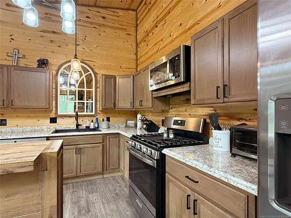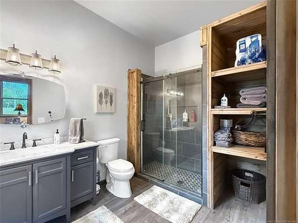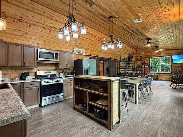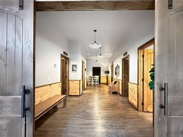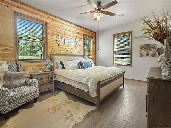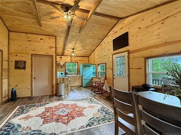 Welcome to La Tierra De Lobos-an 81-acre hunter's and angler's paradise tucked deep within mature hardwood timber, offering true seclusion, comfort, and untouched natural beauty. Designed for the outdoorsman, this remarkable property delivers exceptional wildlife habitat with thriving populations of whitetail deer, turkey, hogs, ducks, and more. Miles of established trails wind through the land, creating easy access for hunting, hiking, riding, or exploring every corner of your private retreat. At the center of the property sits a beautifully crafted 2,300 sq. ft. main home, blending rustic charm with modern convenience. Thoughtfully built for hosting large groups, it sleeps up to 16 guests with 4 bedrooms, 4 bathrooms, and 5 showers-ideal for hunting parties, family gatherings, or weekend escapes. Just steps away, a cozy 2-bedroom lakeside cabin overlooks a breathtaking 3-acre private lake, approximately 35 feet deep and fully stocked-perfect for fishing from sunrise to sunset. This lake is also a duck hunter's dream, attracting mallards, wood ducks, geese, and a variety of other waterfowl throughout the season. Kayaking and peaceful shoreline evenings complete the experience. A versatile 40x60 shop with electricity offers ample space for ATVs, boats, gear, equipment, or workshop projects-giving you the perfect setup to support every outdoor pursuit. With a rare blend of open pasture, thick timber, and pristine water features, La Tierra De Lobos delivers unmatched opportunities for hunting, fishing, recreation, and relaxation. And while the setting feels worlds away, you're still just minutes from McAlester and Durant, offering the ideal balance of privacy and convenience. Don't miss your chance to own this extraordinary slice of Oklahoma wilderness-where land, lifestyle, and adventure come together in perfect harmony.
