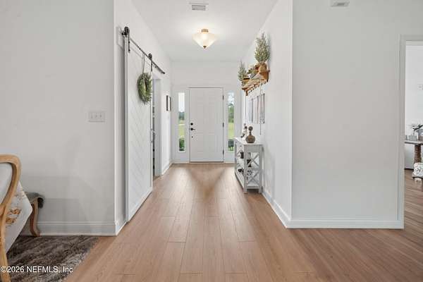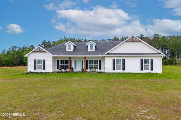 Rare Country Estate!! 38.9 Acres of Privacy & Luxury Built in 2020, this stunning 4BR/3BA home offers upscale finishes and wide-open country living. The kitchen features granite countertops, stained birch cabinets, a gas cooktop, and a pot filler. Two master suites each include walk-in closets and walk-in showers, while the primary adds a soaking tub and his-and-hers closets. Two flex spaces, a formal dining room, brand new LVP flooring, and fresh paint throughout mean there's nothing left to do but move in. Outside, cedar columns frame a back porch with an electric fireplace, plus a heated/cooled storage room, a 30x40 pole barn, and a private shooting range. Nearly 39 acres of peace and quiet -- this is country living without compromise.