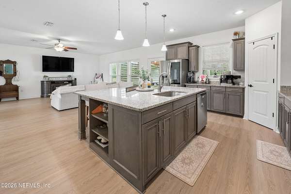 - Ceiling Fan(s), Guest Suite, His and Hers Closets, Kitchen Island, Open Floorplan, Pantry, Primary Bathroom -Tub With Separate Shower, Walk-In Closet(s)