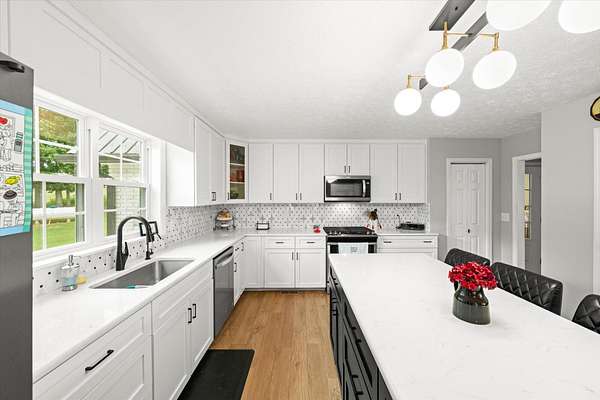 Est $4,318/moIn 2022 this home was completely remodeled. New HVaC, generator, gutters, windows, doors, flooring, and more. The chandelier in the dining room does not remain but will be replaced. Lots of storage. Great for entertaining. Large Barn with loft . Come see this beauty today. 7.2 acres to roam or to a farm life at its best.