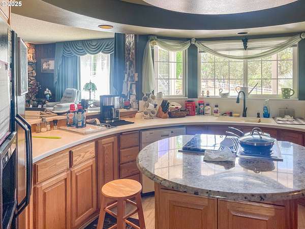 Est $3,321/moThis large one-level, custom one-owner home has it all! It features very large rooms, formal living and dining rooms, kitchen that is uniquely designed in a 270 degree circle with cook top in island, large activity room with bar, slider that opens up to the patio and in-ground pool with slide and hot tub, 3 bathrooms, large utility with washer/dryer included, and oversized double garage. The property has a circular drive and a large shop with 4 bay parking. All this on over 20 acres. Possible owner terms.