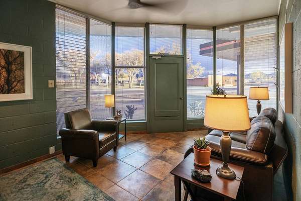 Step inside to more than 1500 square feet of open floor space, where soaring ceilings and professional-grade track lighting set the stage for creativity. A bright reception area framed by full-light windows welcomes natural sun, while central heating and cooling, new 200-amp electrical service, and on-demand hot water ensure modern comfort. Outdoors, a spacious 864 square foot south-facing canopy offers covered space, and off-street parking is abundant- making the property as functional as it is distinctive. With mixed-use zoning, it can adapt to a gallery, studio, workshop, live/work space, or something entirely new. Located in a welcoming arts community along New Mexico's vibrant art corridor, this one-of-a-kind property offers endless creative potential. Reimagined as a fine-art studio, it's equally suited for artists, makers, or an innovative business seeking a distinctive home.