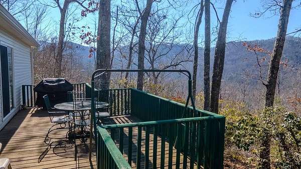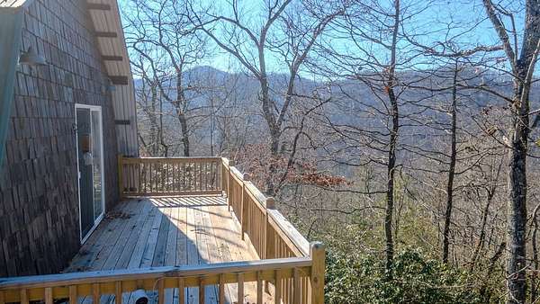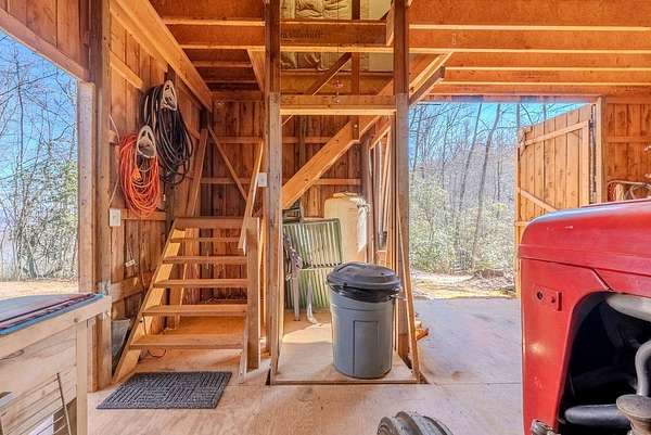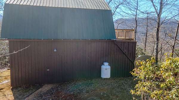 Live in the clouds and wake up to spectacular long-range mountain views from this private Smoky Mountain retreat. Set on 3.88 acres of pristine forest and absolute seclusion, yet only ten minutes to town, this 2-bedroom, 2-bath home with a bonus room offers the perfect blend of escape and convenience. The spacious living room and generously sized primary suite provide comfort, while the additional bedrooms offer flexible space for guests, hobbies, or whatever you desire. A large back deck stretches toward the horizon, giving you a front-row seat to breathtaking vistas. The impressive two-story barn is a true standout-main level parking for two vehicles plus abundant storage, workshop space, and even a bathroom. Upstairs, enjoy a finished bonus area ideal for extra living space, a studio, or a craft room, complete with its own private balcony overlooking the mountains. Come experience life in the Smokies, just minutes from Franklin's festivals, dining, and entertainment-or venture farther for world-class hiking, biking, rafting, and endless outdoor adventure.