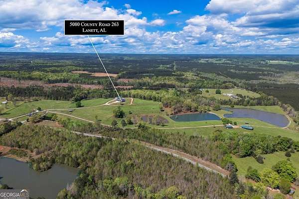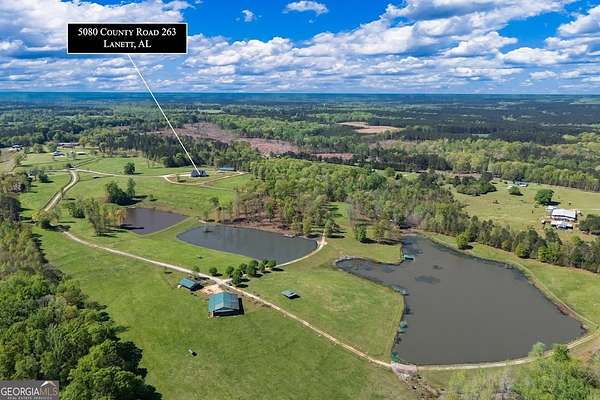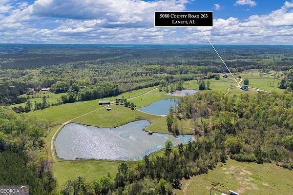 Check out the property video:. Welcome to 5080 County Road 263 in Lanett, Alabama- an incredible 82-acre property perfect for those seeking a luxury working hobby farm or a sprawling equestrian estate. The entire property is fenced and cross-fenced, with multiple barns thoughtfully designed for ease and efficiency in handling livestock. No detail was overlooked in the construction of the custom-built 4-bedroom, 3-bathroom home, completed in 2022. Boasting over 2,600 square feet of magazine-worthy craftsmanship, this home features Hardie siding, spray foam insulation, architectural shingles, composite decking, and endless high-end materials throughout- ensuring a low-maintenance, worry-free investment for years to come. Step through the front door and take in the stunning 360-degree views framed by numerous large windows, all adorned with custom plantation shutters. The living room showcases a soaring vaulted ceiling and a floor-to-ceiling stone fireplace, creating a warm and inviting atmosphere. Designed for entertaining, the gourmet chef's kitchen is equipped with double ovens, a 4-foot gas range, an oversized island with seating, a spacious walk-in pantry, and a designated coffee station. Adjacent to the kitchen, the cozy dining area is the perfect space to bring family and friends together. A dedicated office with dual built-in desks is ideal for those who work from home. The private primary suite, tucked away on one side of the home, features tray ceilings, a luxurious ensuite bathroom with a freestanding tub, dual vanities, a tiled shower, a water closet, and a large walk-in closet. On the opposite side of the home, you'll find three additional spacious bedrooms and two full bathrooms--offering a functional floor plan that accommodates large families or guests while maintaining privacy. Step outside onto the rocking chair front porch and take in breathtaking views of the pastures and three stocked fishing lakes, teeming with trophy bass, catfish, and bream--perfect for the avid outdoorsman. Wildlife, including deer, turkey, and ducks, frequent the property, adding to its natural beauty. Several fruit trees and garden sites, along with a large chicken coop, make this property a dream for serious homesteaders. The property features two main barns. The first, located near the home, includes a 1-bedroom, 1-bathroom bunkhouse complete with a laundry room. The second barn, situated toward the back of the property, is a blank slate that can easily be converted into a horse barn with multiple stalls. It also includes two enclosed storage rooms and a half-bath. Nearby, you'll find covered cattle working pens complete with a head catch and loading lane. With 14 total pastures, each offering shade trees or shade structures, this setup is ready for immediate use. If additional property is needed, options are available. Enjoy low property taxes, mild weather, and no restrictions--the possibilities are endless! Located in Eastern Alabama near West Point Lake and the Georgia state line, this property sits conveniently between Atlanta, GA, and Montgomery, AL, each about 1.5 hours away.