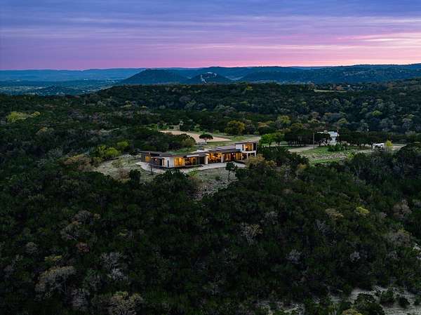 At 1900 ft, the Main House offers panoramic views, breezes, & sunrise/sunset spots. Crafted by John-West Stoddard, it blends elegance & functionality. Completed in 2020, the 4246 sq ft home features a single-level design with a xeriscape courtyard, office, loft bedroom, primary suite, & guest casita. With 4 baths & a 2-car garage, it balances private & shared spaces, seamlessly connecting indoors w/outdoors. Exterior features include metal siding, stucco, Shou Sugi Ban wood siding, & a standing seam metal roof. Inside are 12-ft ceilings, floor-to-ceiling windows, ash wood flooring, & motorized shades. The living area boasts a gas fireplace & built-in cabinets. The dining area features an Odeon chandelier, & the kitchen includes Wolf appliances & Dekton countertops. A walk-in wine room, office, gym area, & guest casita offer luxury. Outdoors, enjoy composite decking, gas firepits, & custom railings. Other amenities include a winery, a workshop, a horse barn & diverse wildlife.