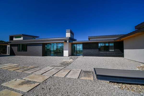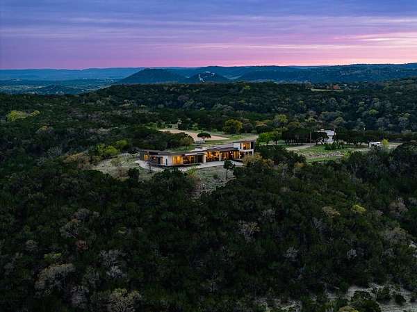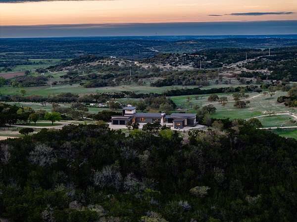 LUXURY PROPERTY AUCTION: 3–17 April. Accepting starting bids through 2 April, with starting bids expected between $1.75M and $2.75M. Earn an incentive by 2 April. An extraordinary Hill Country sanctuary awaits at this architecturally significant 126+ acre estate perched at 1,900 feet elevation, where panoramic vistas and sweeping Texas skies define every moment. Designed by acclaimed architect John-West Stoddard and completed in 2020, the 4,246-square-foot main residence offers a rare harmony of contemporary elegance and natural immersion, featuring floor-to-ceiling windows, 12-foot ceilings, and seamless indoor-outdoor living with composite decking and a gas firepit. A walk-in wine room and Wolf-appointed kitchen elevate the experience of refined living, while the versatile tasting room, complete with its own kitchen, fireplace, and sweeping porch views, lends itself beautifully as a private retreat, guest casita, or studio. A spring-fed five-acre pond, two high-fenced pastures, and abundant native wildlife complete a lifestyle that is as breathtaking as it is rare.