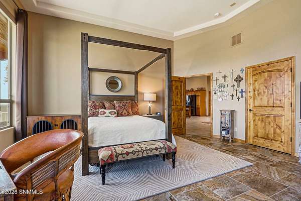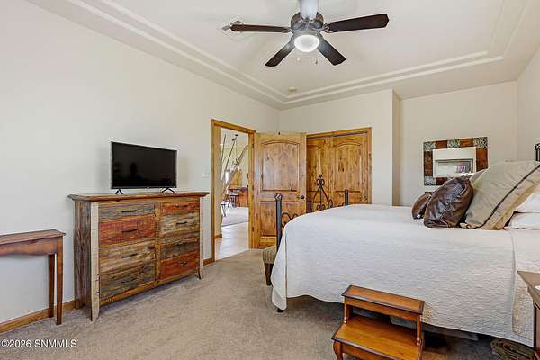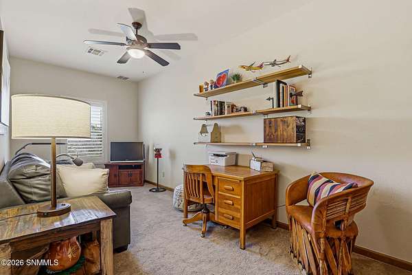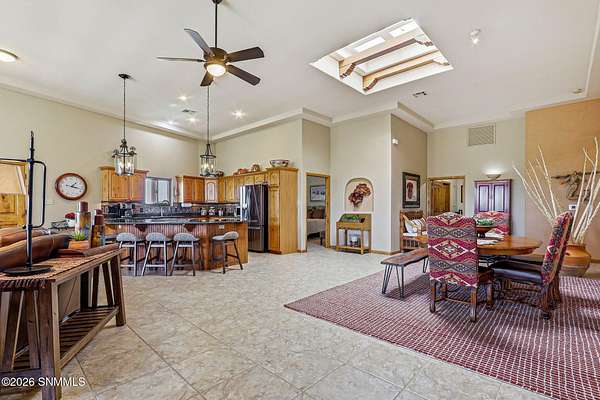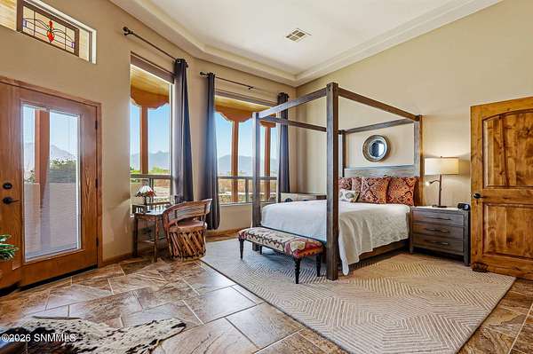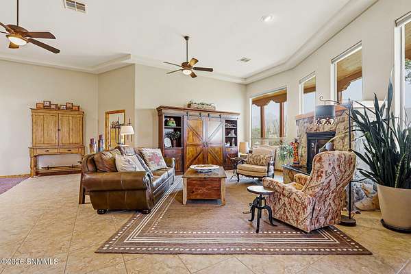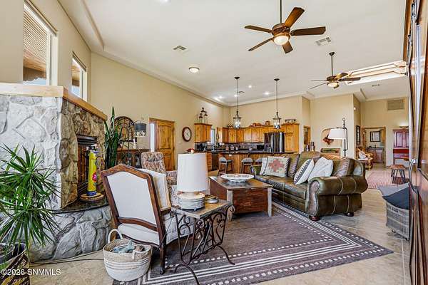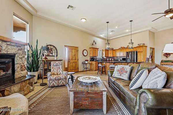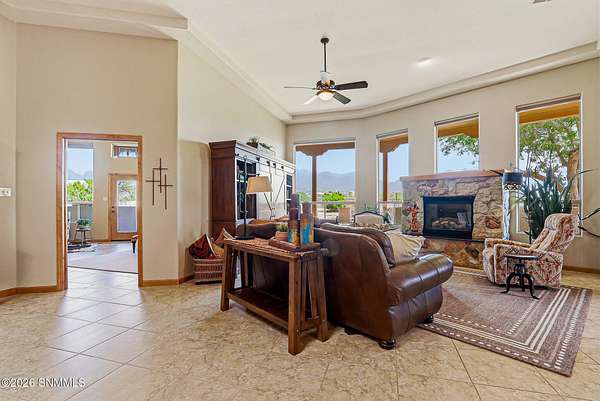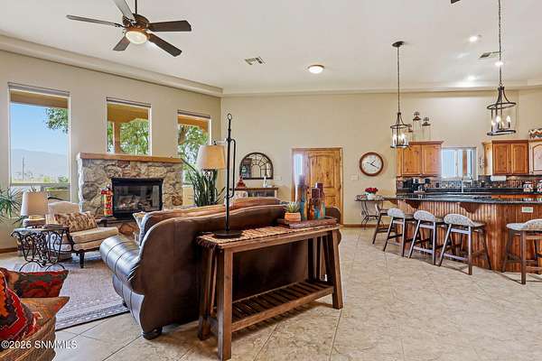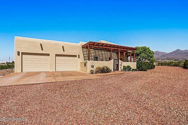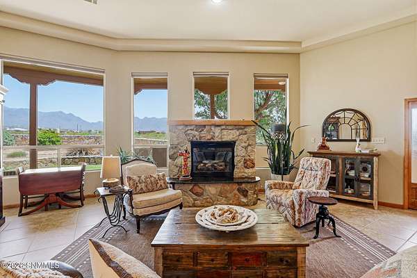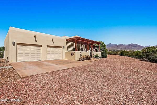 Escape to your own private retreat with this beautifully maintained 4-bedroom, 3-bath home set on 4.49 stunning acres with breathtaking ORGAN MOUNTAIN VIEWS! Spanning 2,591 square feet, the open floor plan creates a seamless flow perfect for everyday living and entertaining, anchored by a cozy fireplace that sets the tone for warm desert evenings.The luxurious primary suite is a true sanctuary, with huge windows to capture the views, and also featuring a spa-like en-suite bath with a walk-in shower and soaking jacuzzi tub. A second bedroom also enjoys its own private en-suite, offering comfort and privacy for family or guests.Practical upgrades abound, including a newer water softener, updated HVAC unit, and an oversized garage -- all reflecting the exceptional care given to this property inside and out. Whether you're sipping coffee on the porch watching the sunrise over the mountains or enjoying a quiet evening by the fire, this home delivers the best of New Mexico living. Minutes from Golf and Hiking!