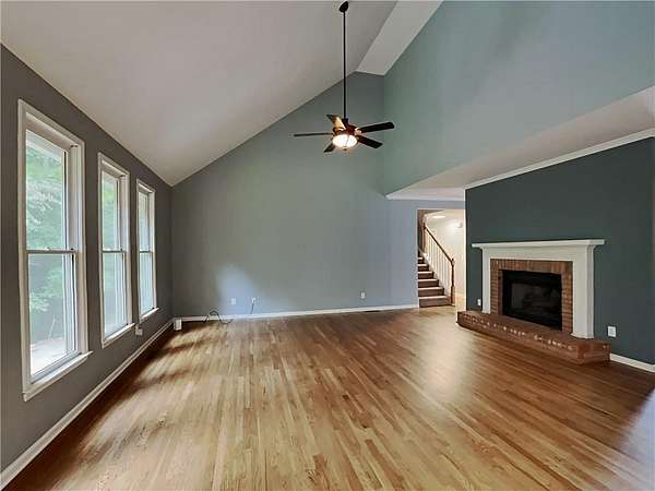 The upper level of this home has wood floors throughout with tile in the bathrooms and plantation shutters. The entry foyer leads to the formal dining room and family room with vaulted ceiling and gas log fireplace. The kitchen is spacious and has Granite counters, island, breakfast bar, tile backsplash, lots of cabinets. Kitchen has stainless appliances (gas cook top, microwave, dishwasher, refrigerator, double wall ovens), and disposal. There is a breakfast area with access to the rear deck. Half bath and laundry room with washer/dryer hook-ups. There are two spare bedrooms with ceiling fans and a full hall bath with tub/shower combination. The owner's suite has bedroom with ceiling fan that is attached to the owner's bath that features dual vanities, his/her closets, soaking tub,and separate shower. The basement is finished with a large bedroom, a large living room with two ceiling fans, a bonus room, a full bath with shower only, and an open kitchen with island, cabinets, refrigerator, stove, free-standing microwave, and vent hood. There is a laundry area with front loader washer & dryer included (owner will not repair or replace washer & dryer). There is a tremendous amount of storage space in the unfinished basement area. There is a covered screened in patio on the lower level. The backyard is large. There is a 2-car side entry garage along with an extra driveway leading to a parking pad for extra vehicles. Minutes from I-75 & 575 with easy access to the I-75 Expressway entrance. Convenient to dining & shopping. Great schools!! No aggressive dog breeds. There will be a non-refundable pet fee based on type of pet along with a $50/month pet rent.