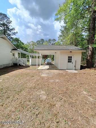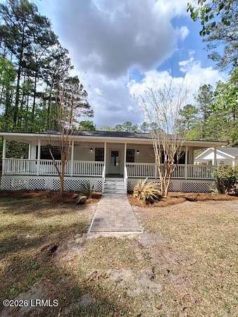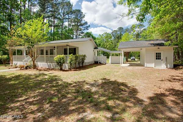 Welcome to your very own Lowcountry cottage retreat, where charm meets modern comfort on over three gorgeous acres of country living! This beautifully renovated three-bedroom, two-bathroom home spans 1,250 square feet of thoughtfully updated living space, and trust us -- you truly have to see it to believe it. The popular split floor plan offers privacy and flow, while the huge front porch with a charming swing practically begs you to slow down and savor sweet tea sunsets. Out back, a covered breezeway and carport lead to an adorable workshop, a remodeled shed that doubles as the ultimate retreat space, and endless possibilities limited only by your imagination. No expense was spared during this stunning renovation. Inside, you will find thick luxury vinyl plank flooring, plywood cabinet