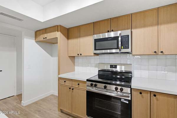 - Built-In Microwave, Dishwasher, Disposal, Electric Range