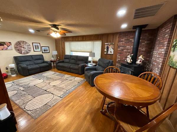 - Electric, Forced Air, Wood, Wood Stove